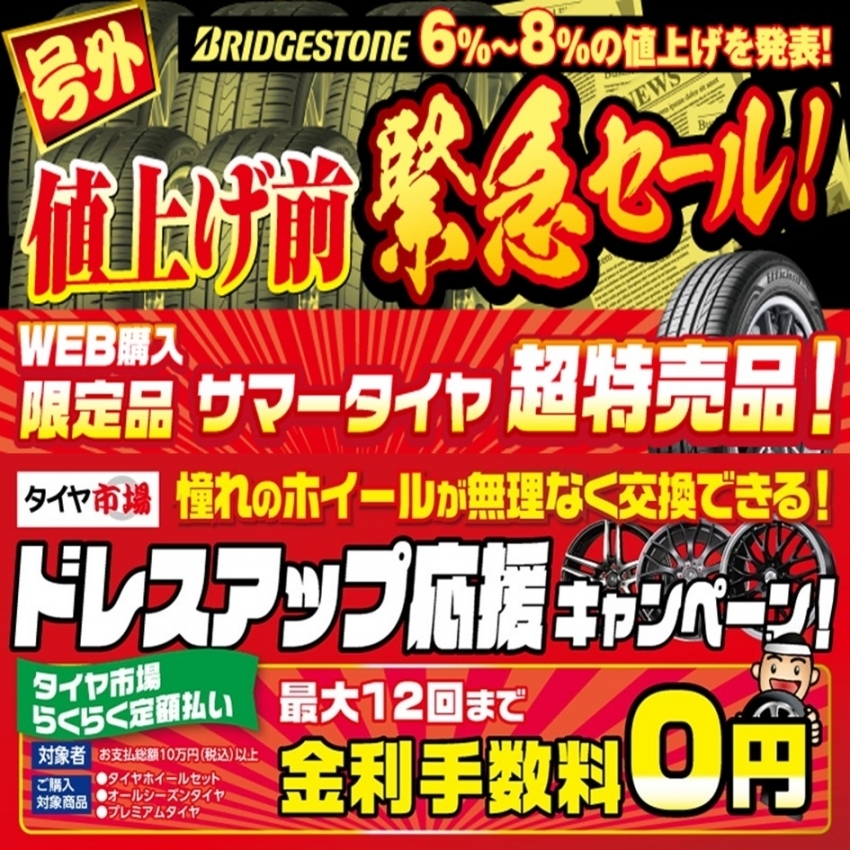 高額なタイヤ、商品ほど価格変動が大きくなってしまいますね・・・・