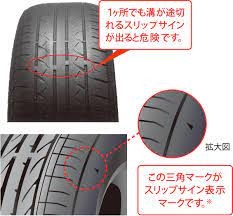 スリップサイン がでている場合はウェット性能が落ちてしまっているので止まれなくなってしまったり空気圧不足でタイヤのバーストに