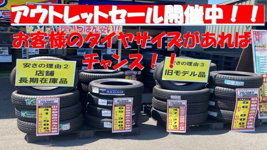 只今、タイヤ市場館林店ではアウトレットセール開催中です!!