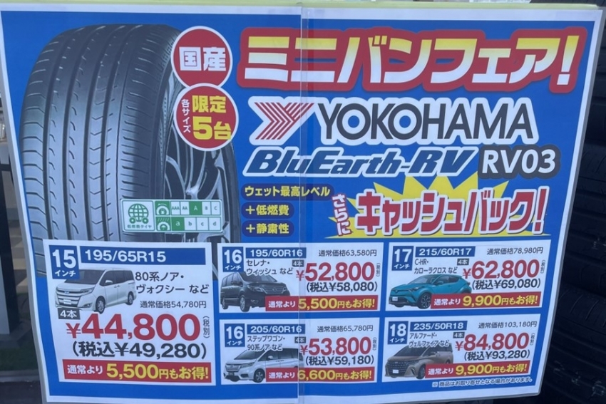 ミニバンタイヤが安い!!ミニバンフェア!!