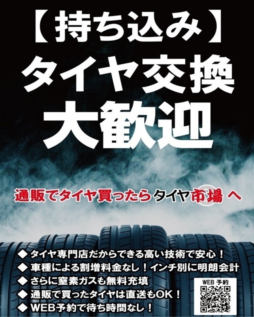 タイヤ市場館林店は お持ち込みタイヤも大歓迎です!!