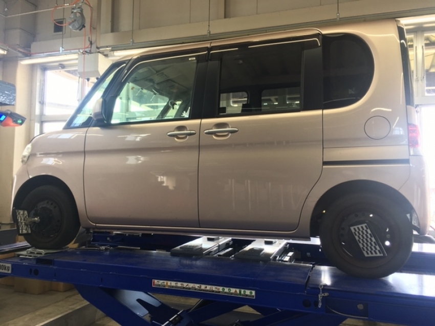 先日タントのアライメント調整をさせて頂きました!このお車は車検でご入庫したお車になります!