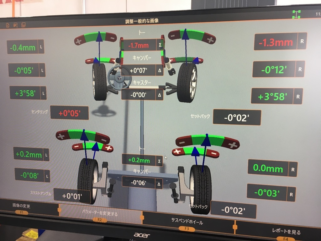 このお車は前側のトー角だけですので左右のトー角を調整させて頂きました!