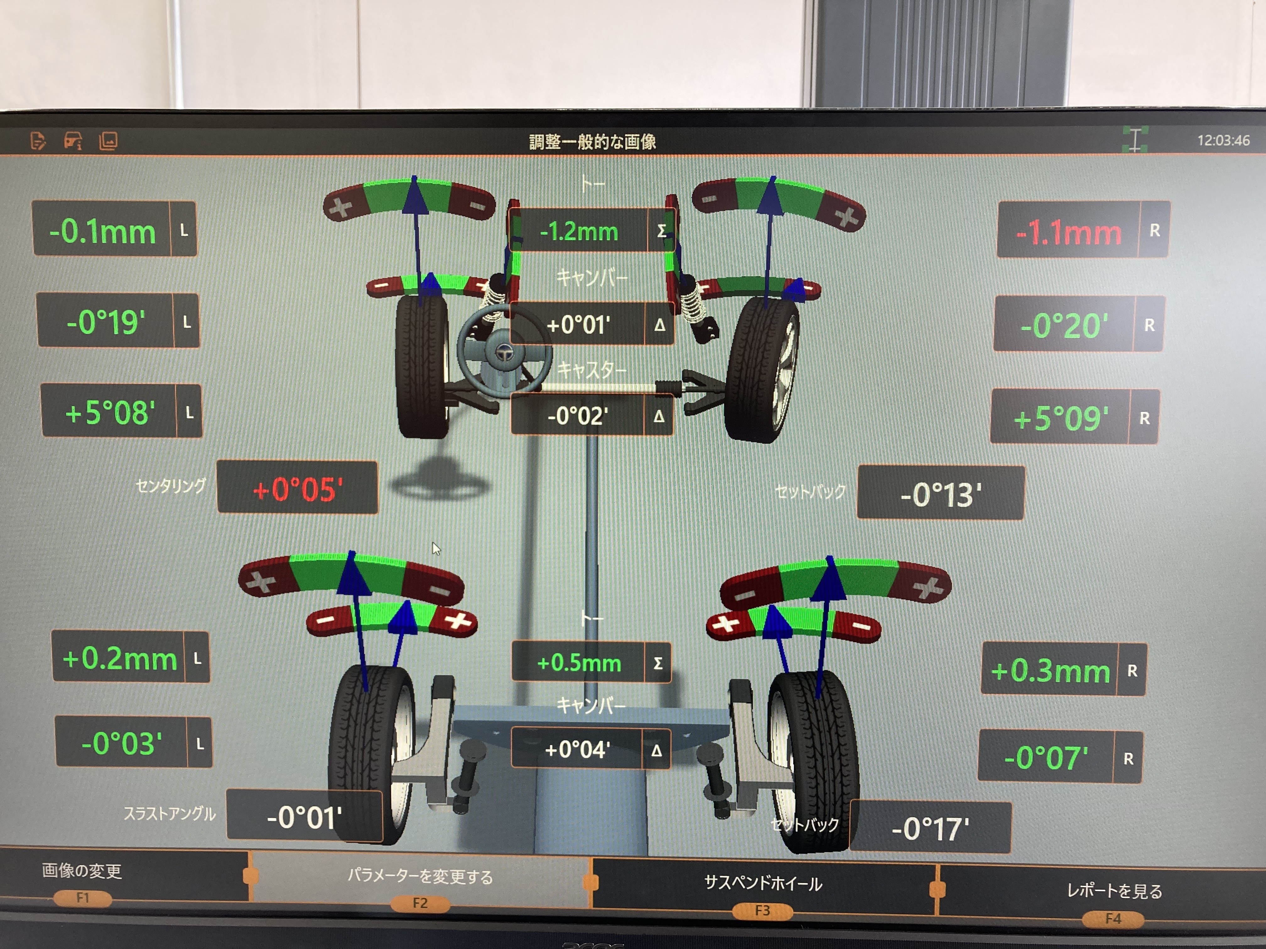 足回り部品の交換の必要があった為、アライメント調整をさせて頂きました!