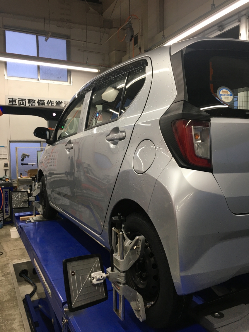 先日、ミライースのタイヤ4本交換・タイヤフィルムコート・アライメント調整をさせて頂きました!