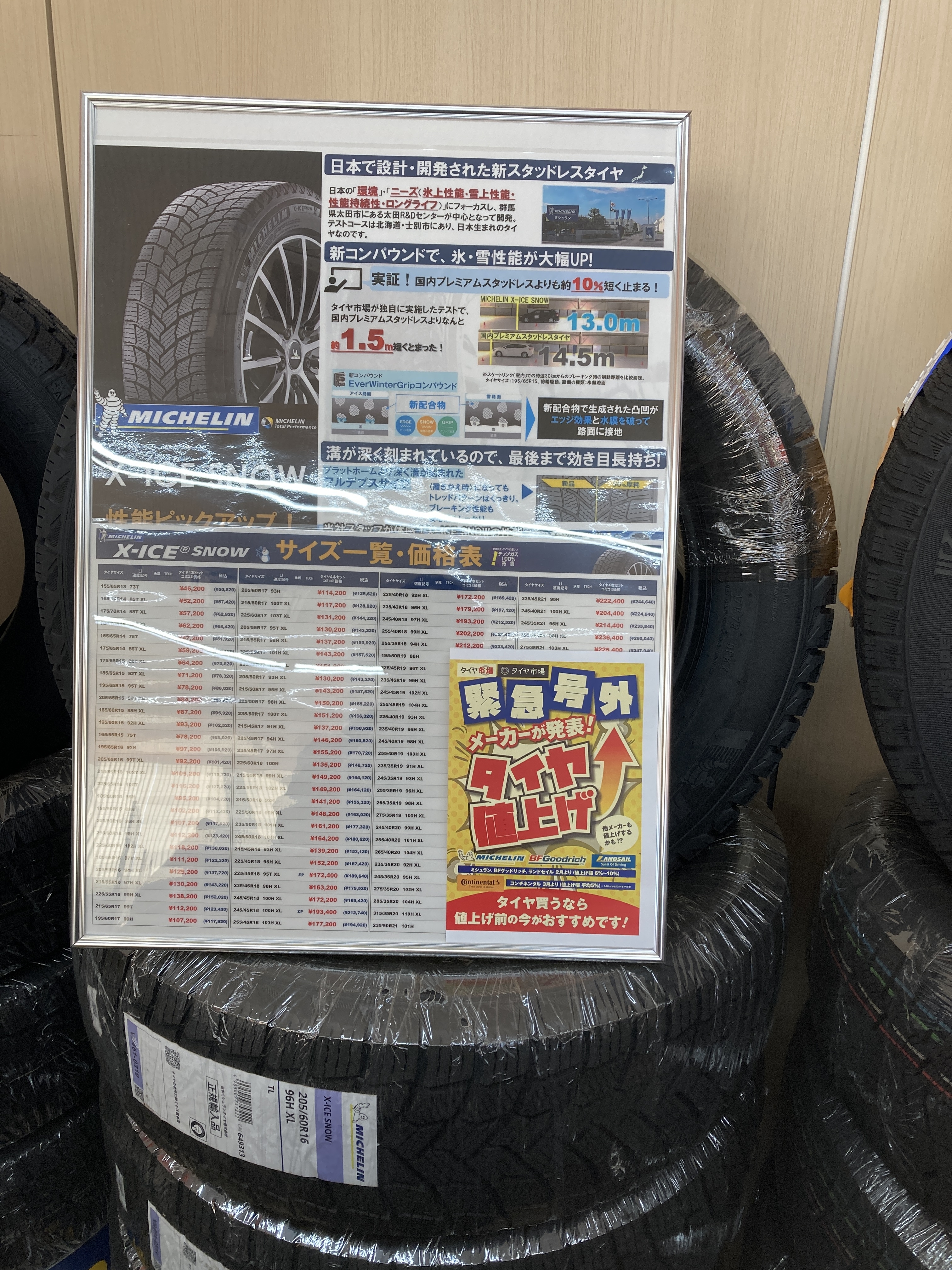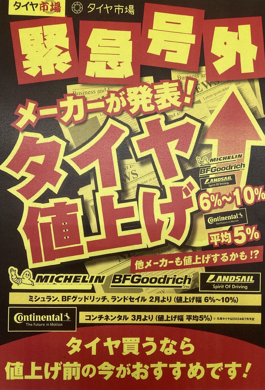 その他、大手タイヤメーカーも順次値上げ予定となっております!!(>_<)