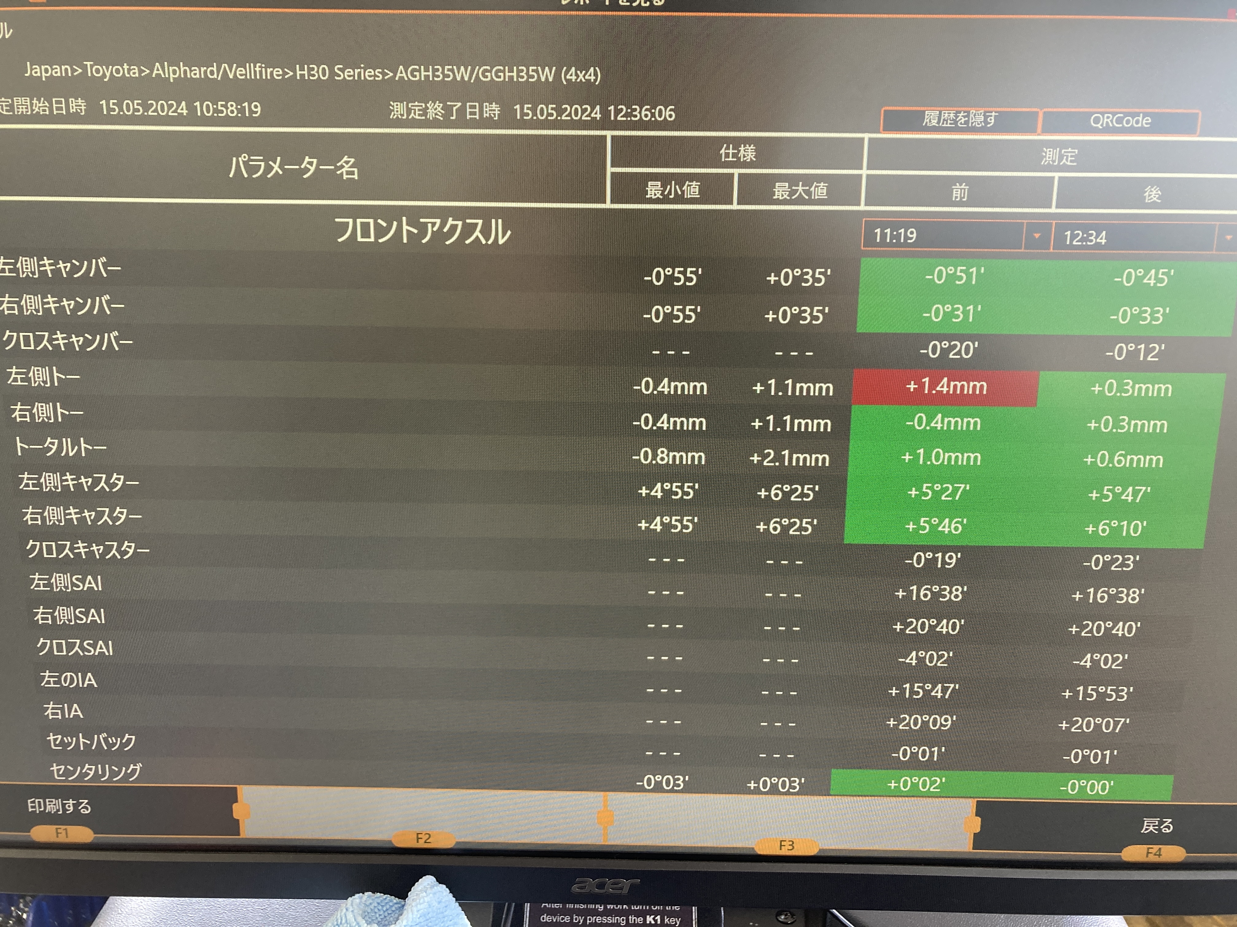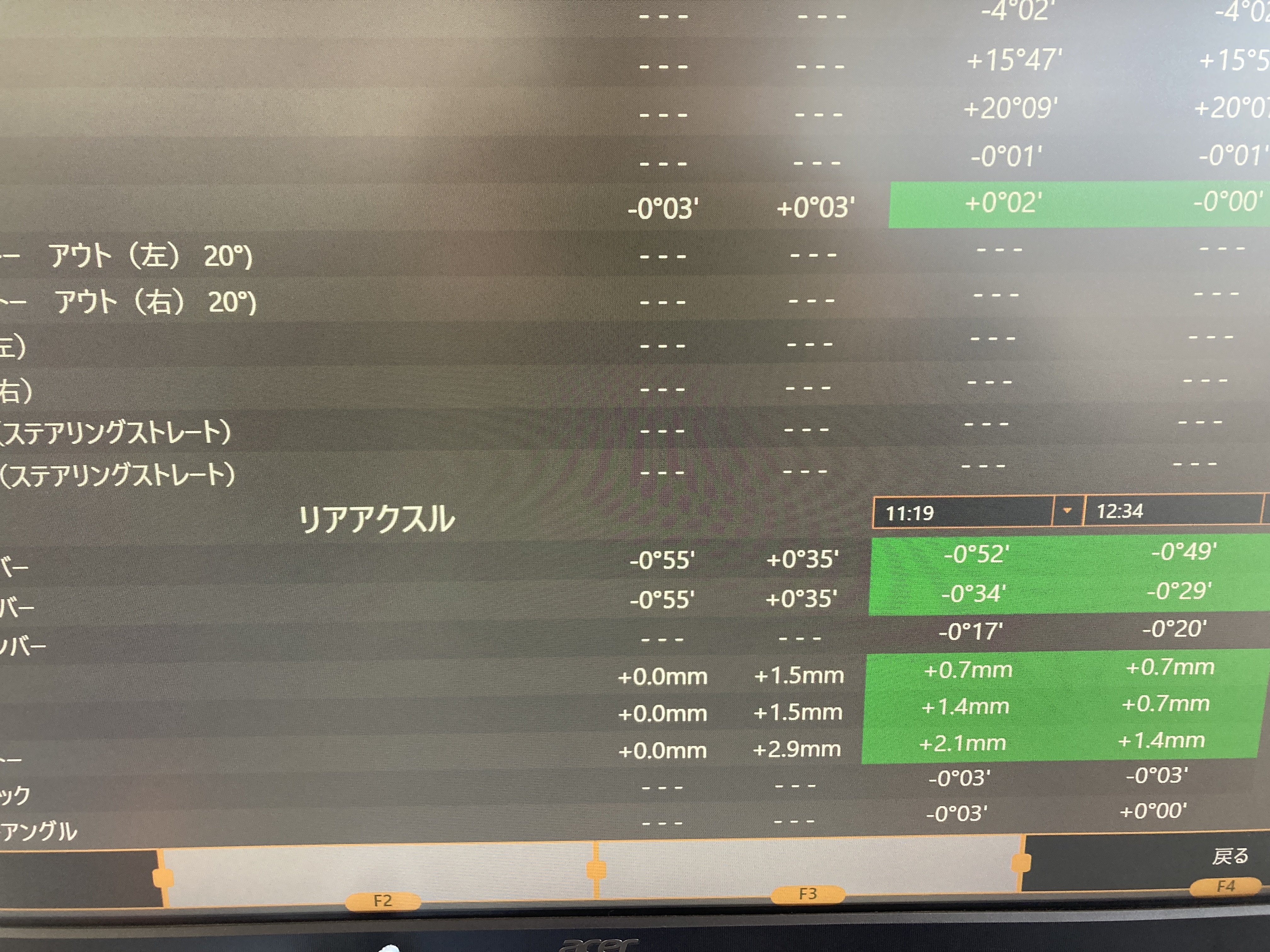 測定を行い数値がズレている個所が多かった為アライメント調整を行わせていただきました!