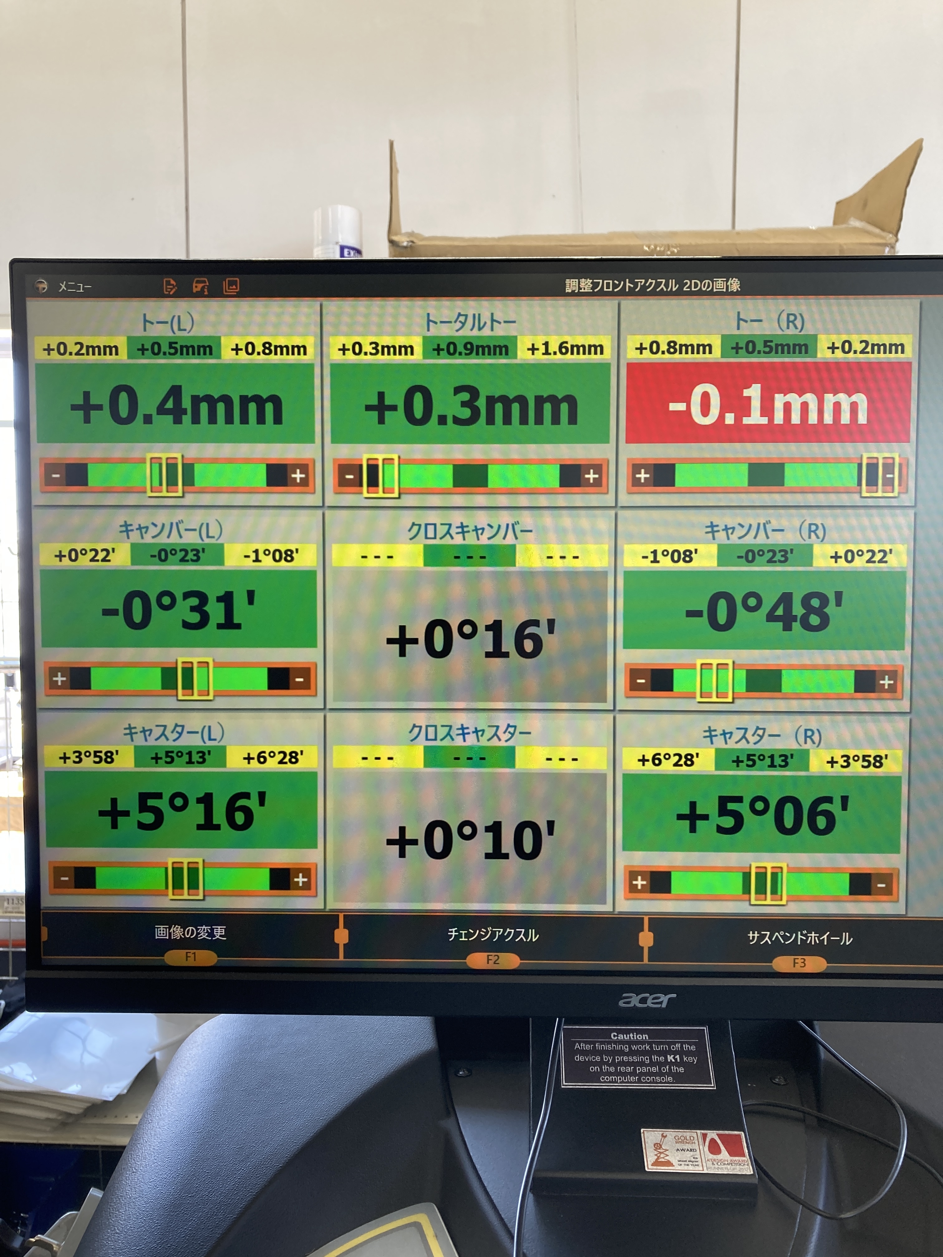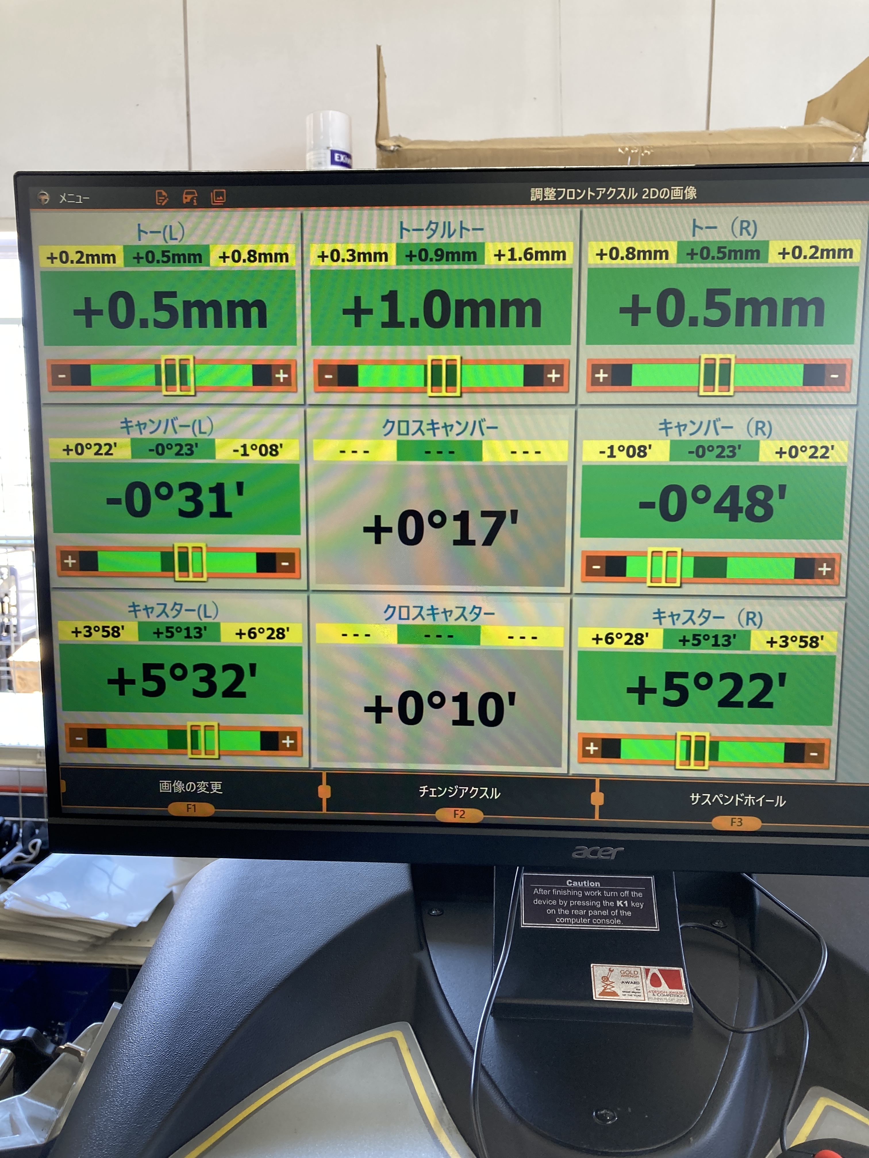 メーカー基準値だと、+数値のトーインが基本になりますので、調整をさせていただきました!