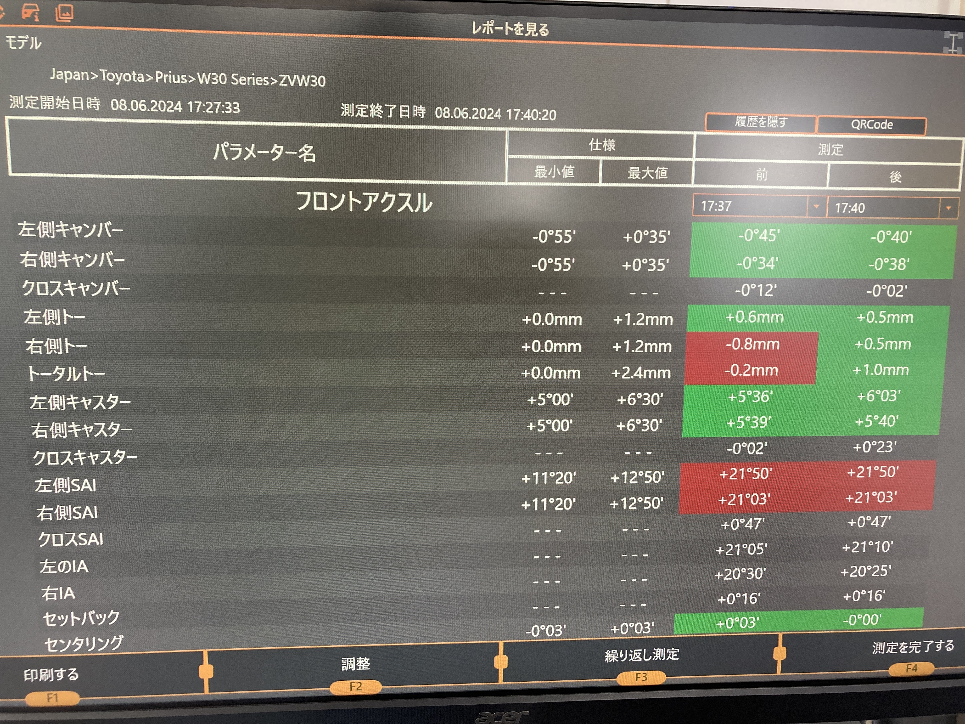 これが内べりの原因で間違いないので、メーカー基準値内に調整させていただきました!