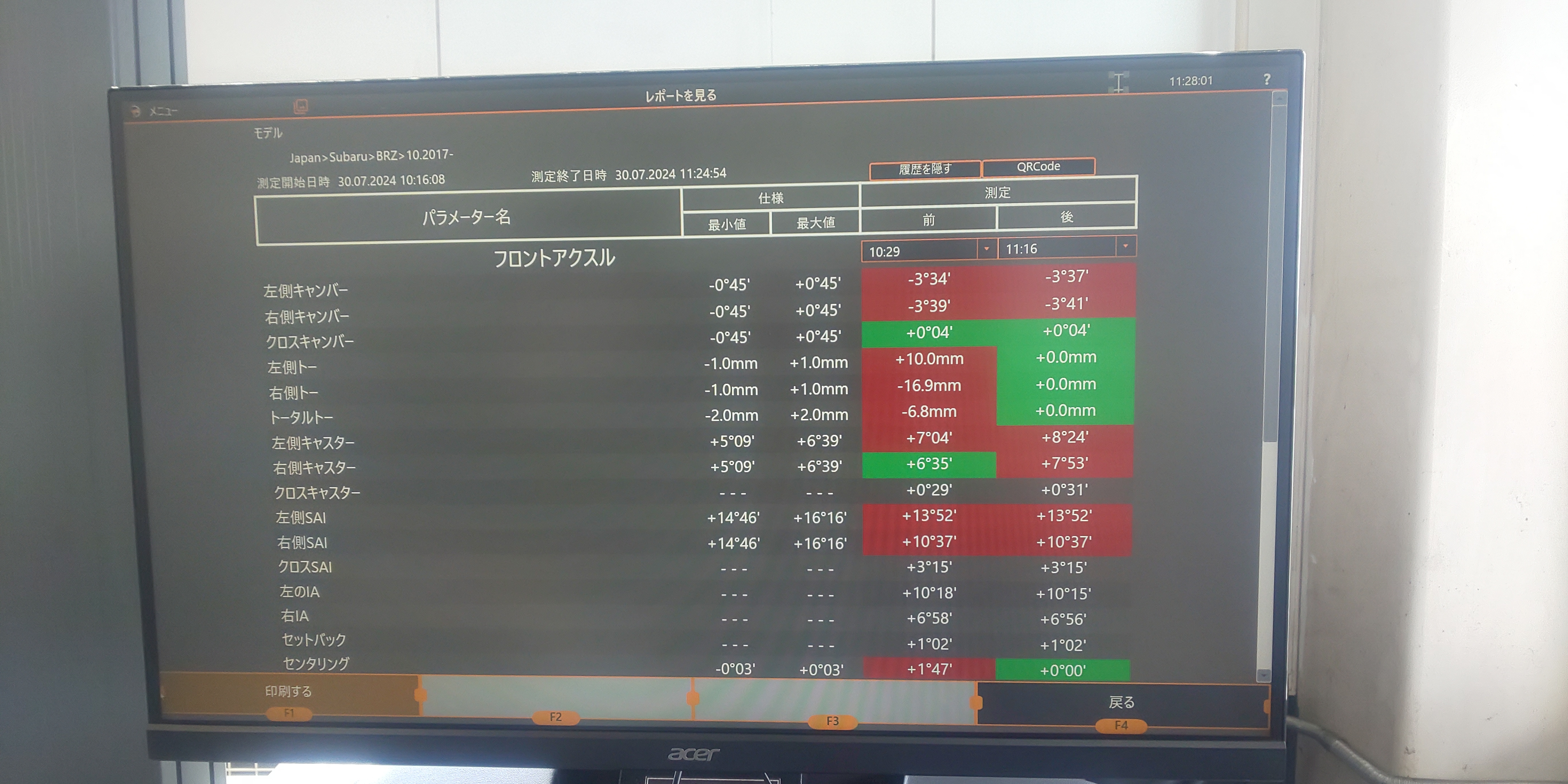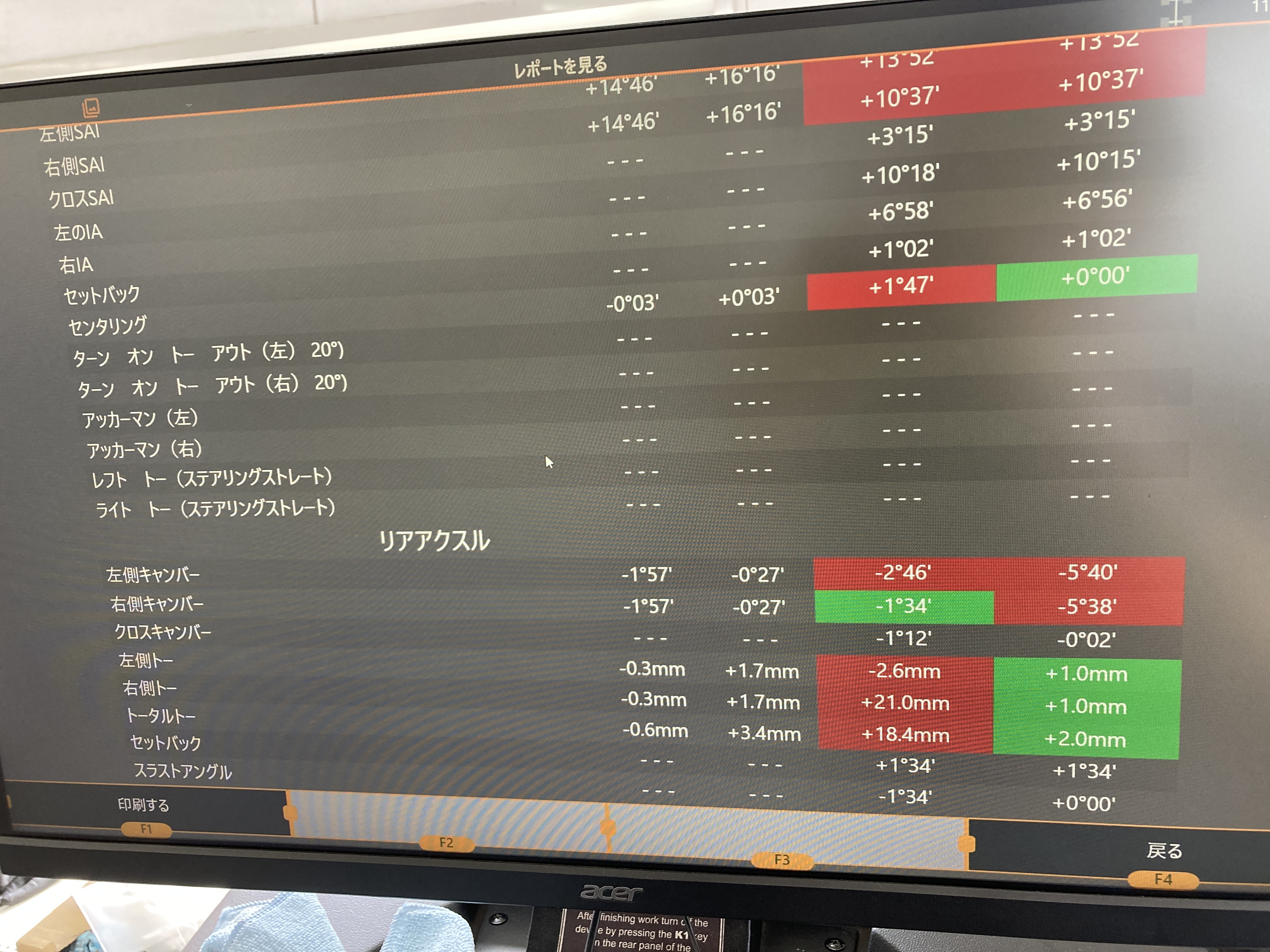 ご要望の通りリヤキャンバーを全ねかしでトーはメーカー基準値に合わせ調整いたしました!