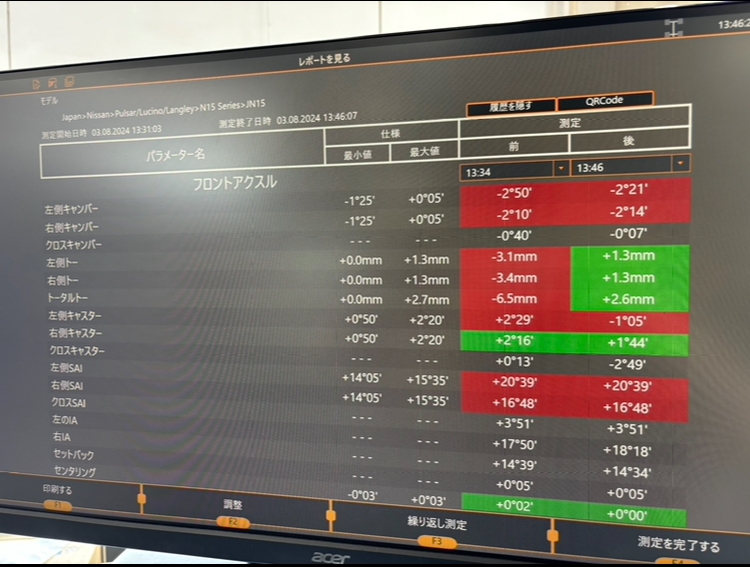 キャンバーが左右で少しずれているためアライメント調整のご依頼をいただきました!