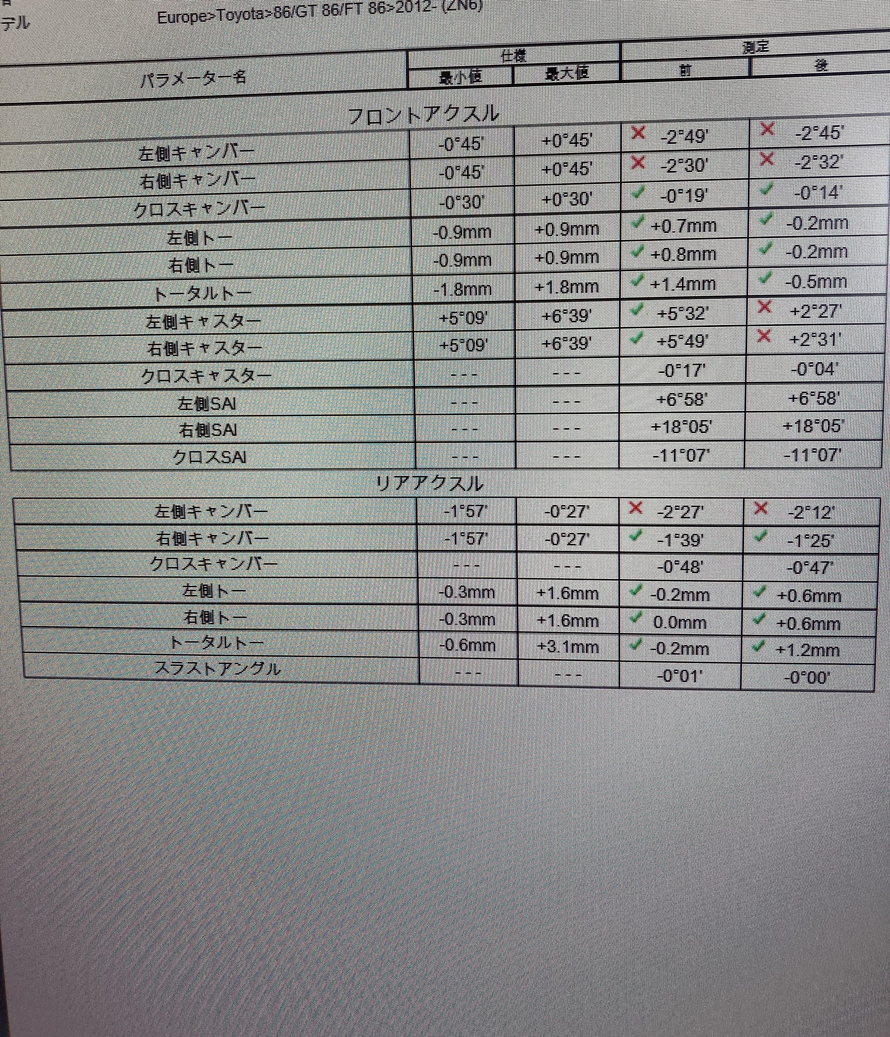 フロントとリヤのトー角を調整してほしいとのことでした!