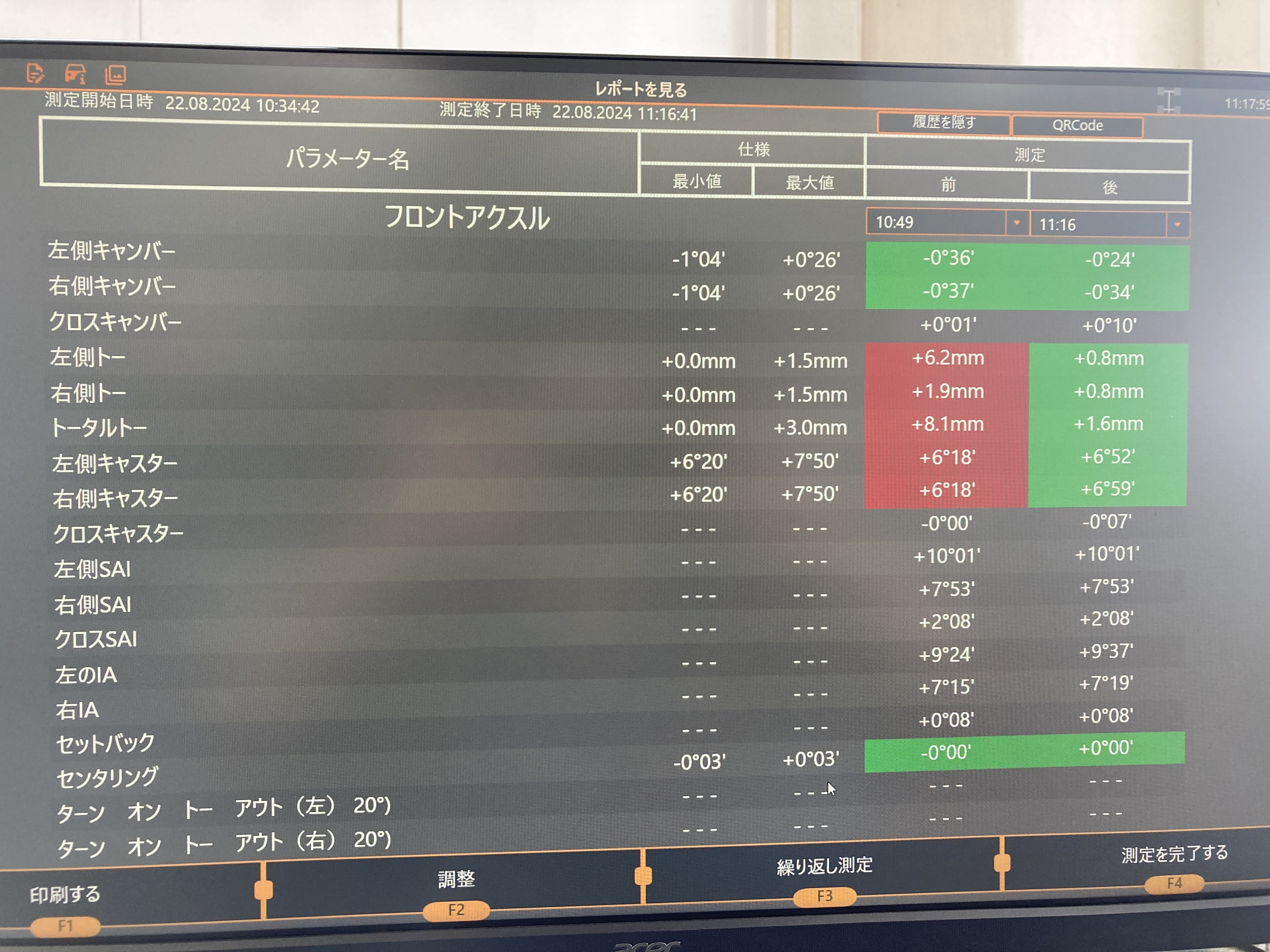 アライメントの測定をして足回りがズレていないか確認をオススメいたします!
