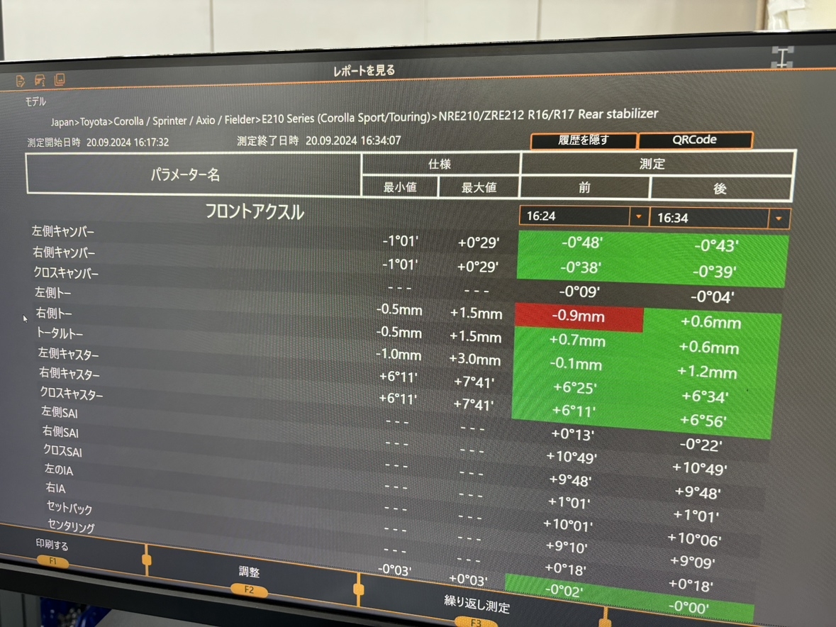トヨタ:カローラツーリングのアライメント調整!!