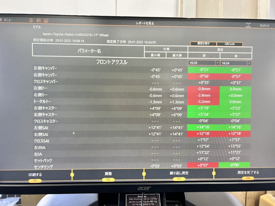 トヨタ:ライズのアライメント調整を作業させていただきました!