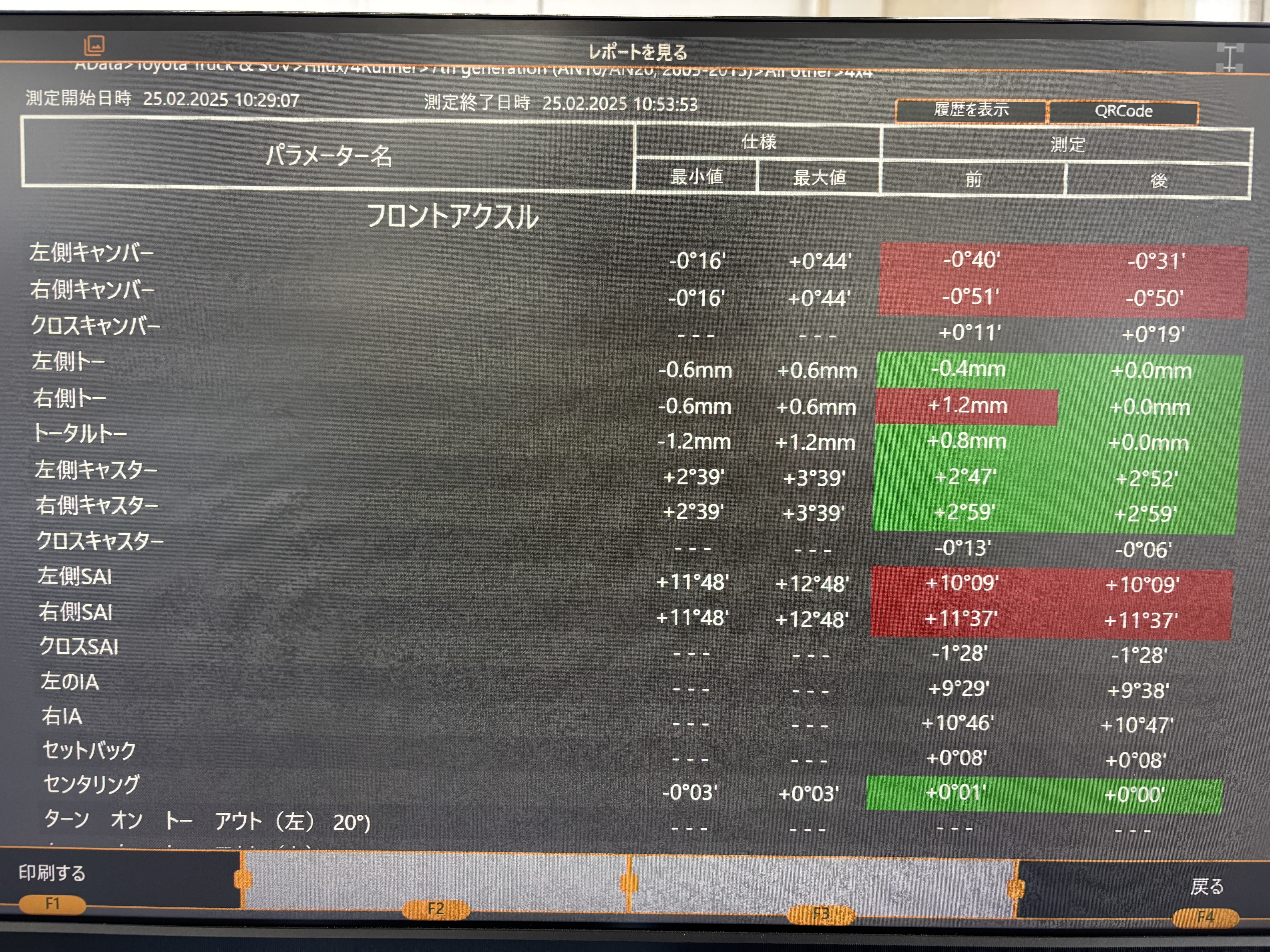 本日はトヨタ:ハイラックスサーフのアライメント調整の作業をさせていただきました!