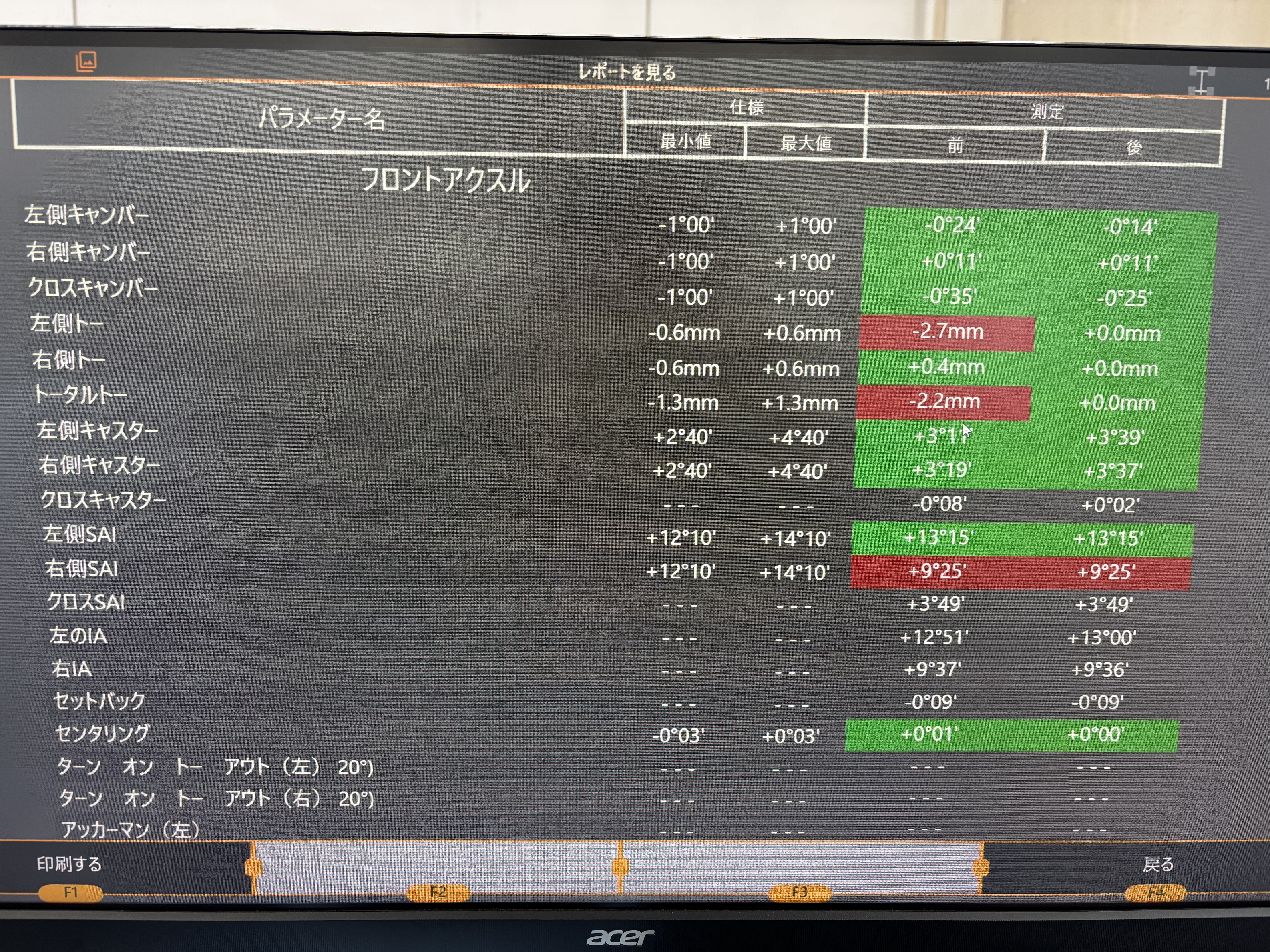 数値がズレていると偏摩耗や燃費性能の低下につながってしまいます・・