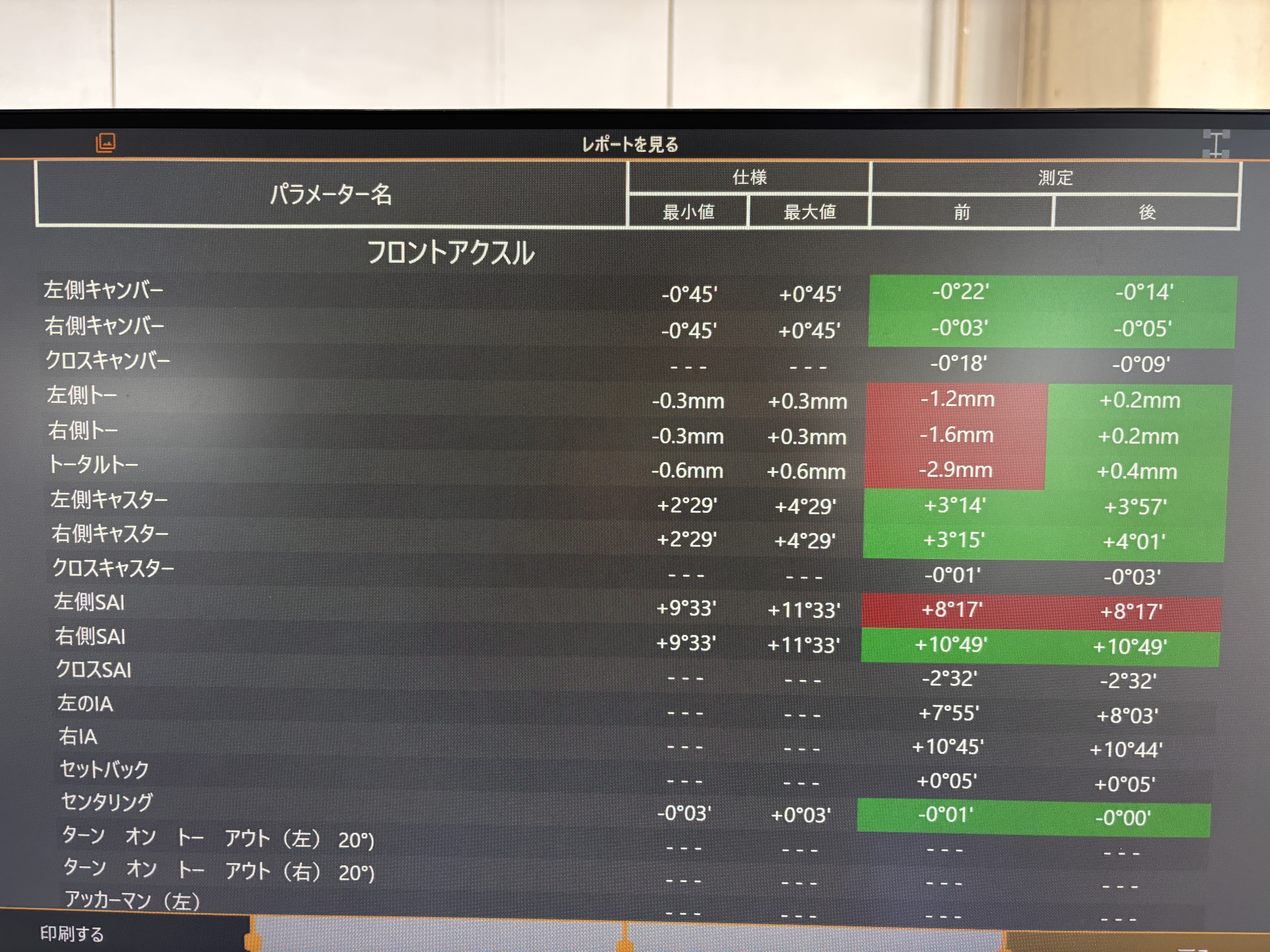 数値を見ると左右とも基準値よりも外側に開いている状態になっていました💦