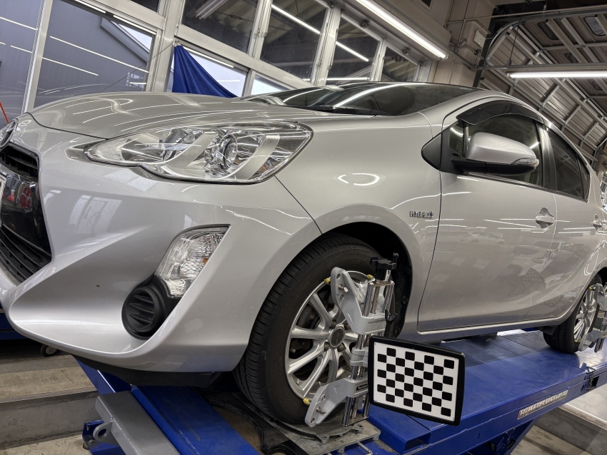 本日はトヨタ:アクアのアライメント調整を作業させていただきました!