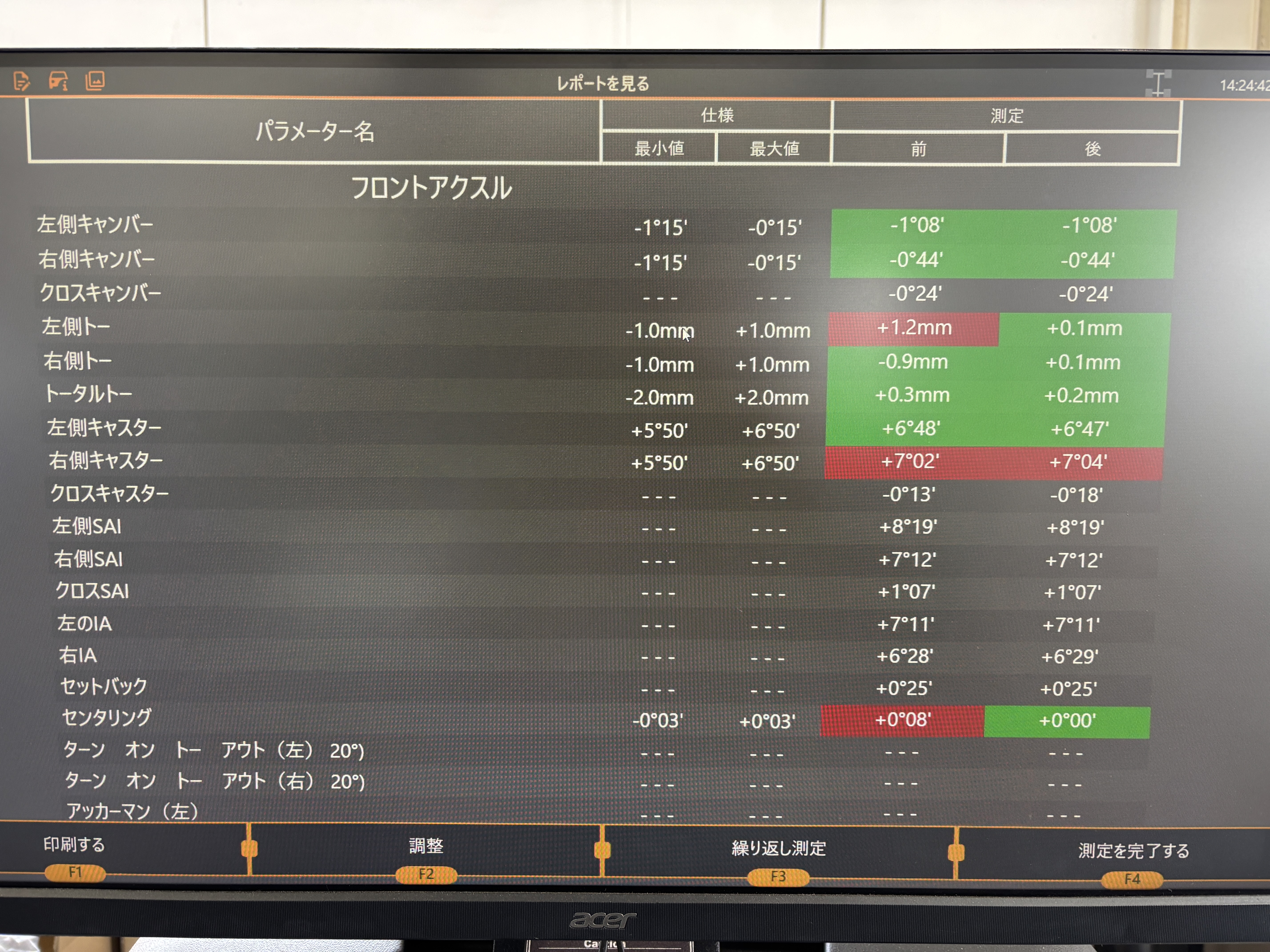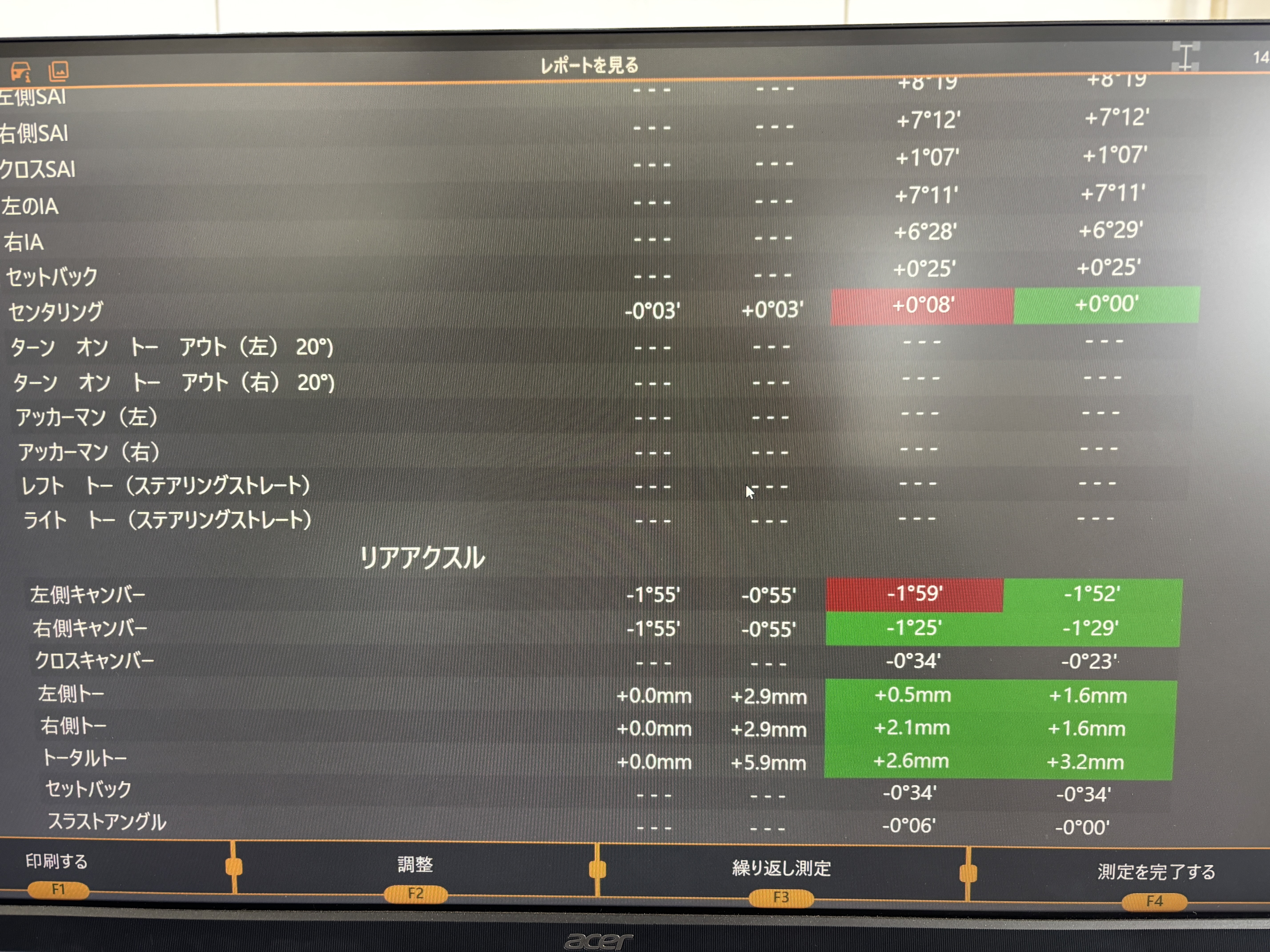 リヤトー・フロントトーを基準値に数値を調整して作業完了になります!