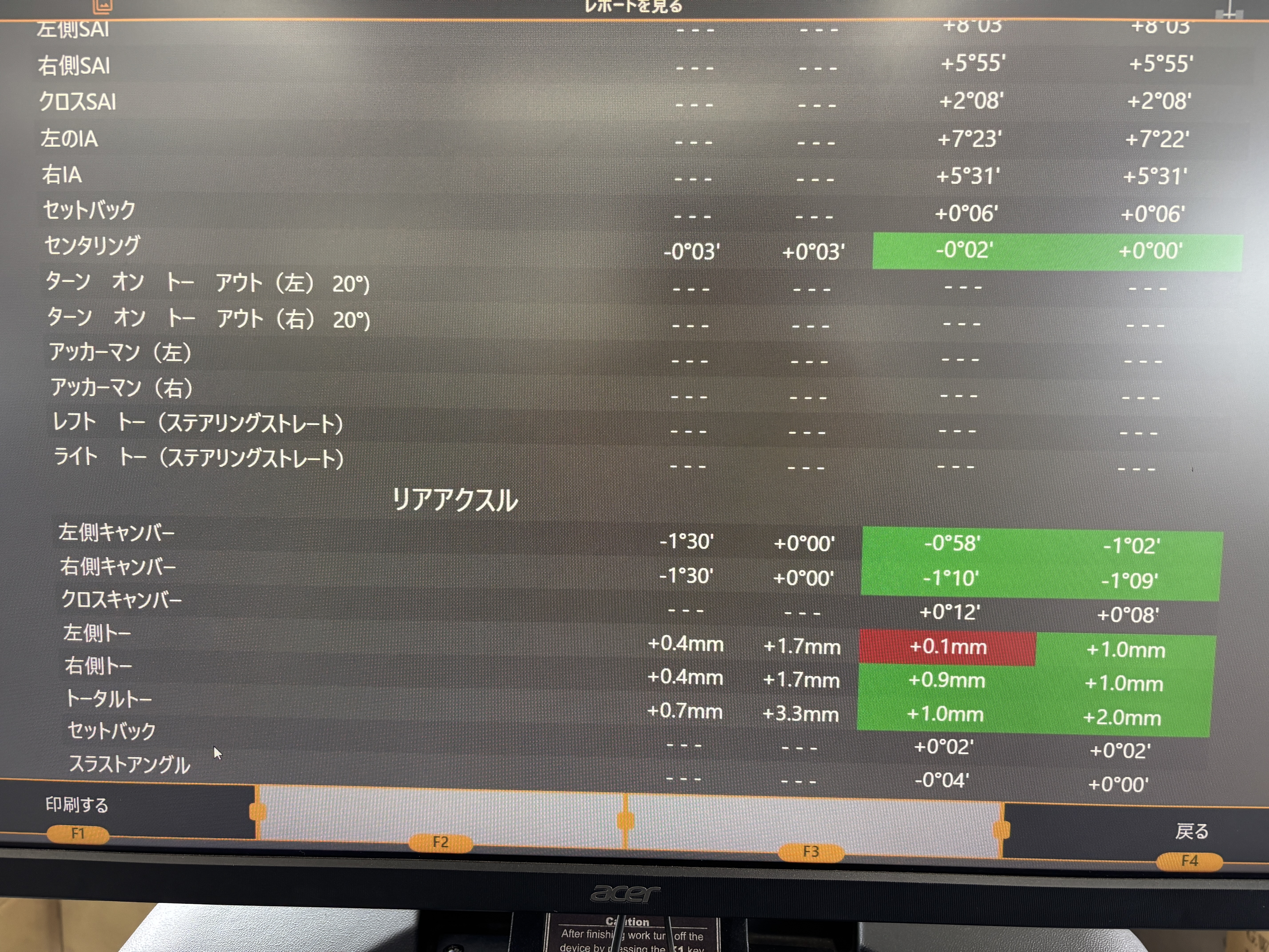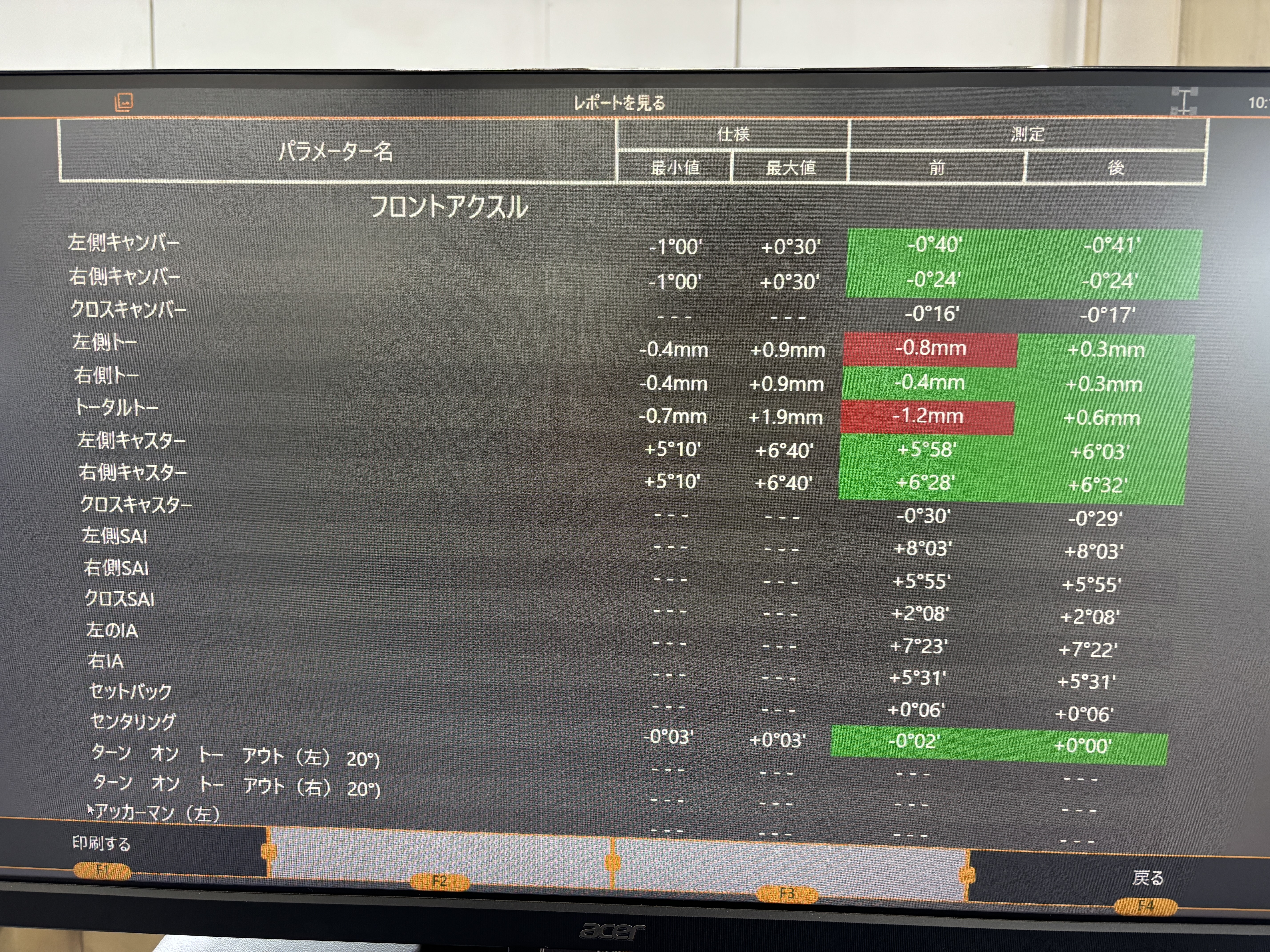 リヤトー・フロントトーともに数値がズレていたため基準値に調整致しました!