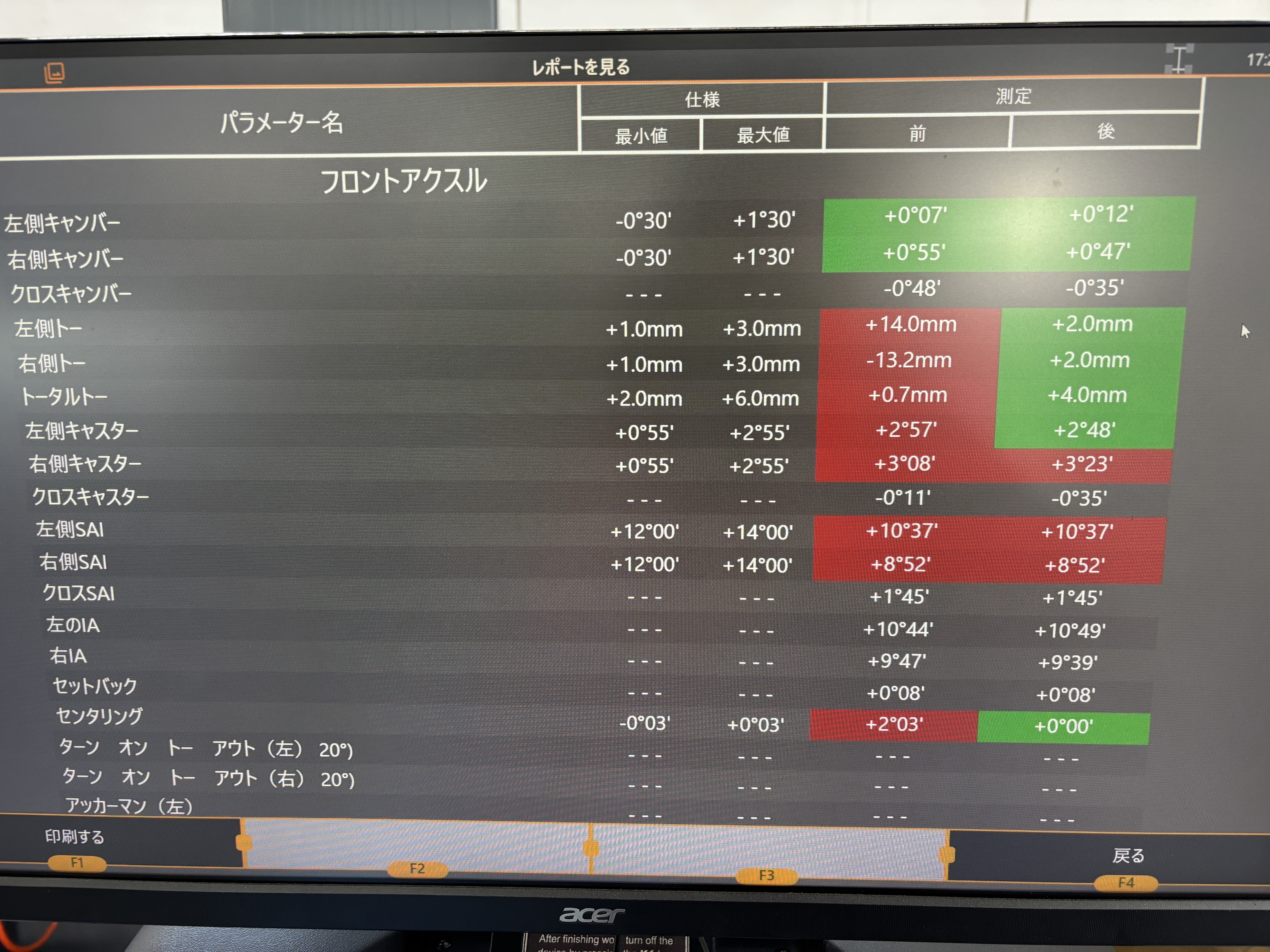 フロントトーがかなりズレていたため基準値に調整させていただきました!