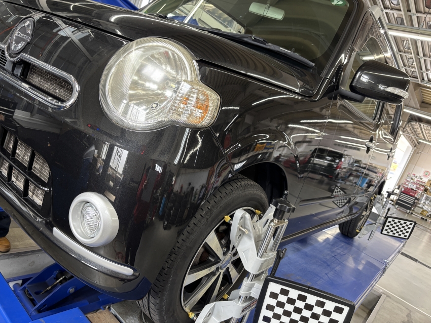 ダイハツ:ミラココアのアライメント調整を作業させていただきました!