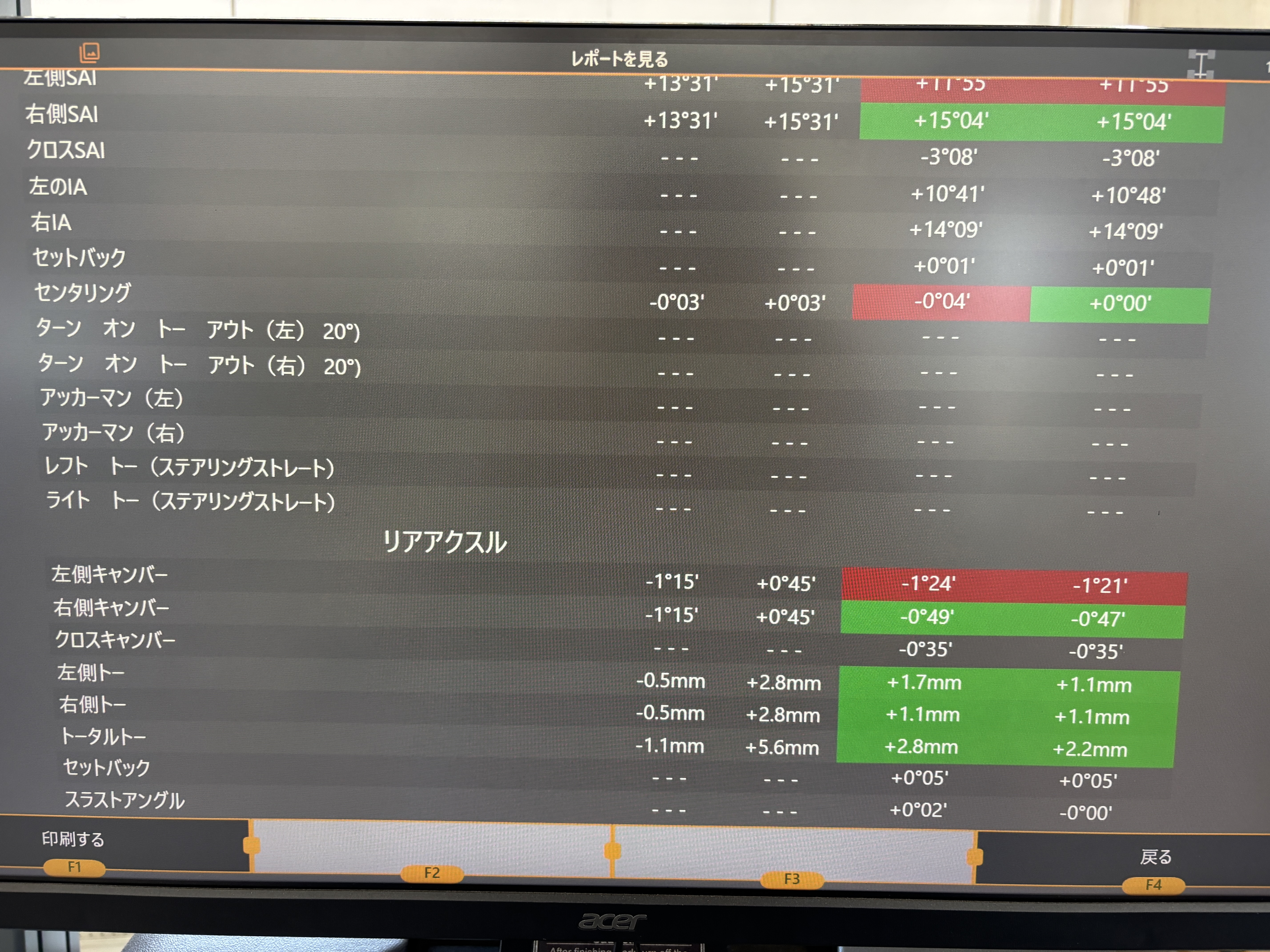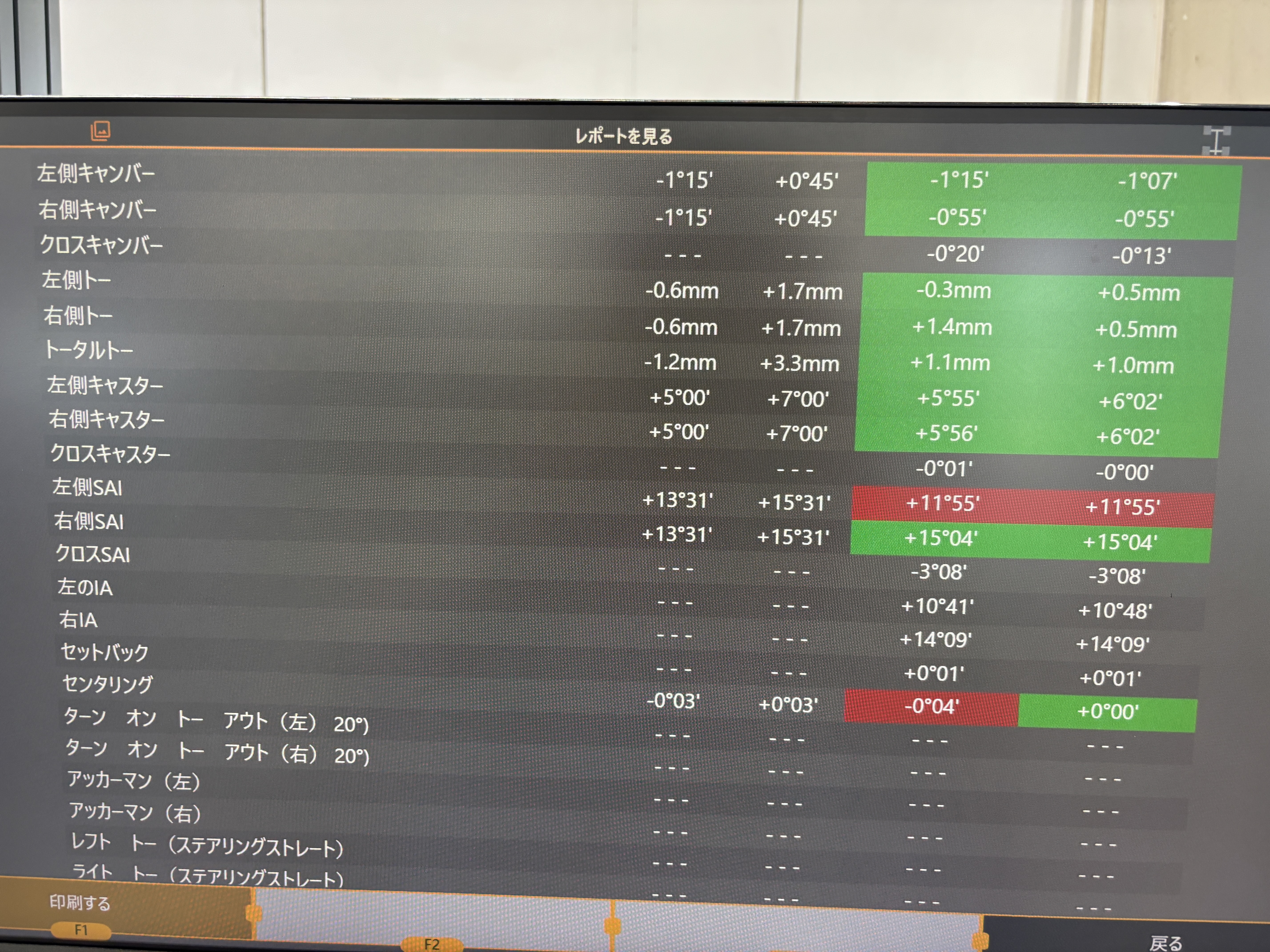 リヤトー・フロントトーともに基準値に調整させていただきました!