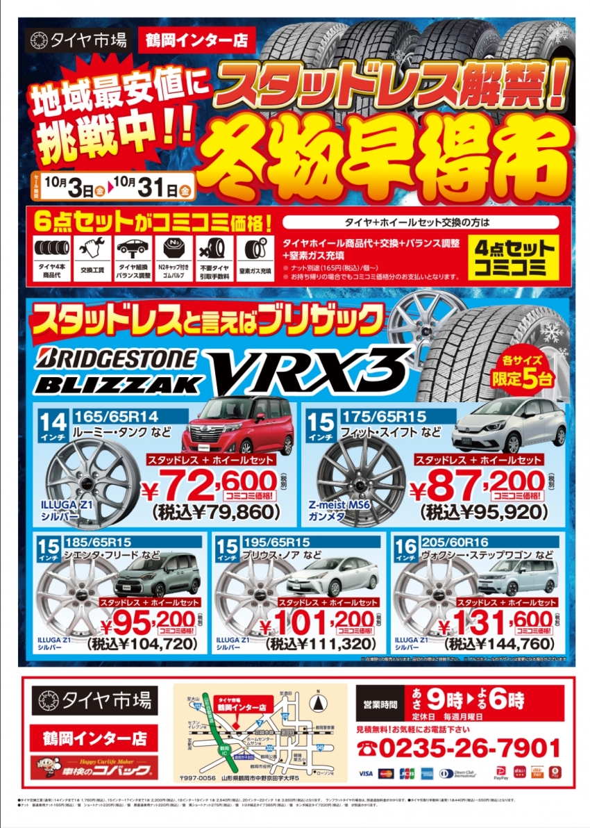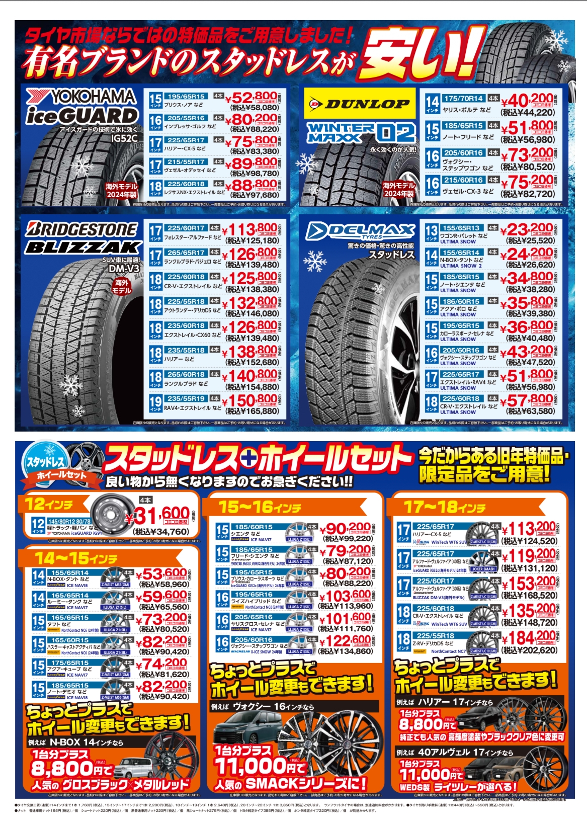 10月3日~10月31日までスタッドレスタイヤをメインにとてもお買い得な商品を載せたチラシがでております!