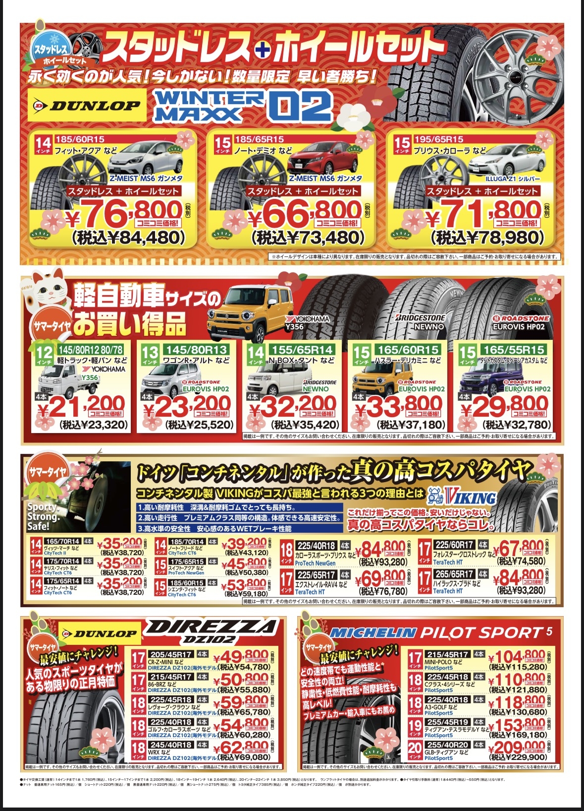 スタッドレスタイヤ・サマータイヤのお買い得商品がたくさんございます(^▽^)/
