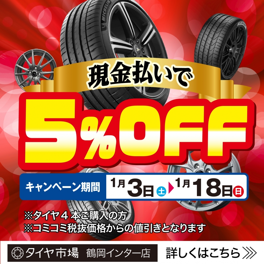 現金ご購入で5%オフの期間は1月3日~1月18日までとなっています!