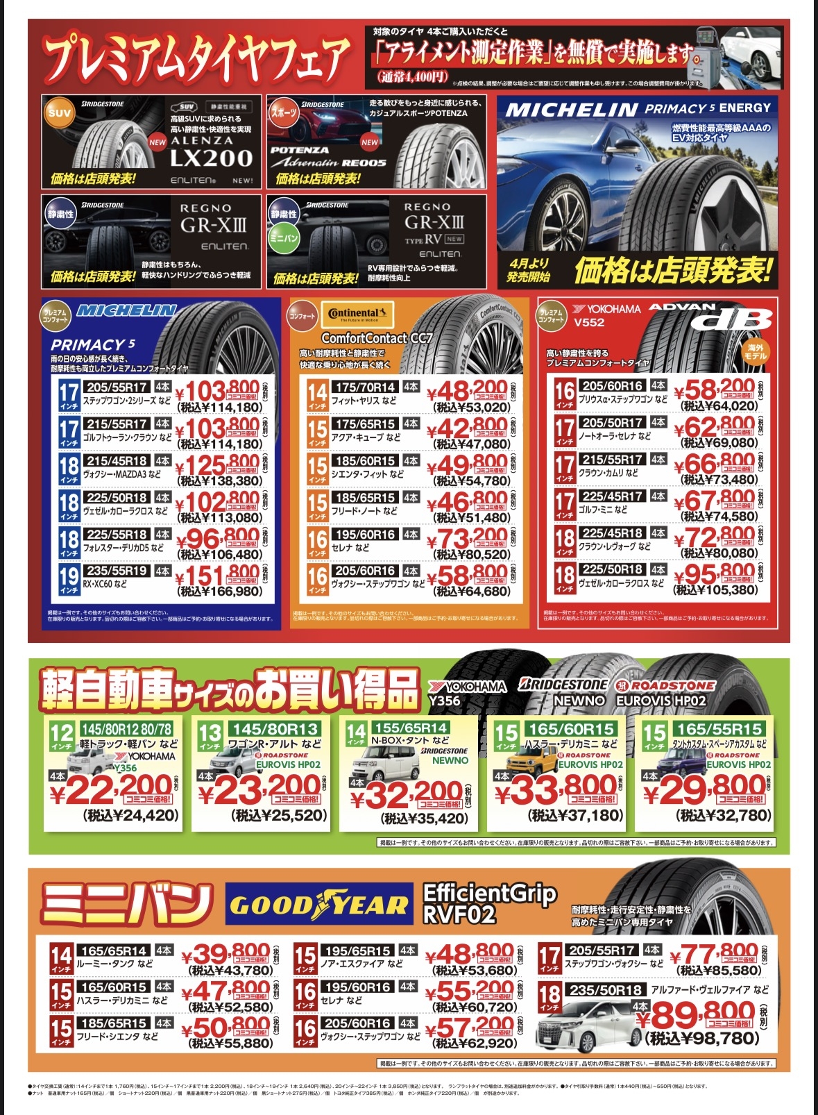 今回のチラシ限定になりますのでサマータイヤの買い替えを検討されている方はぜひお早めに!