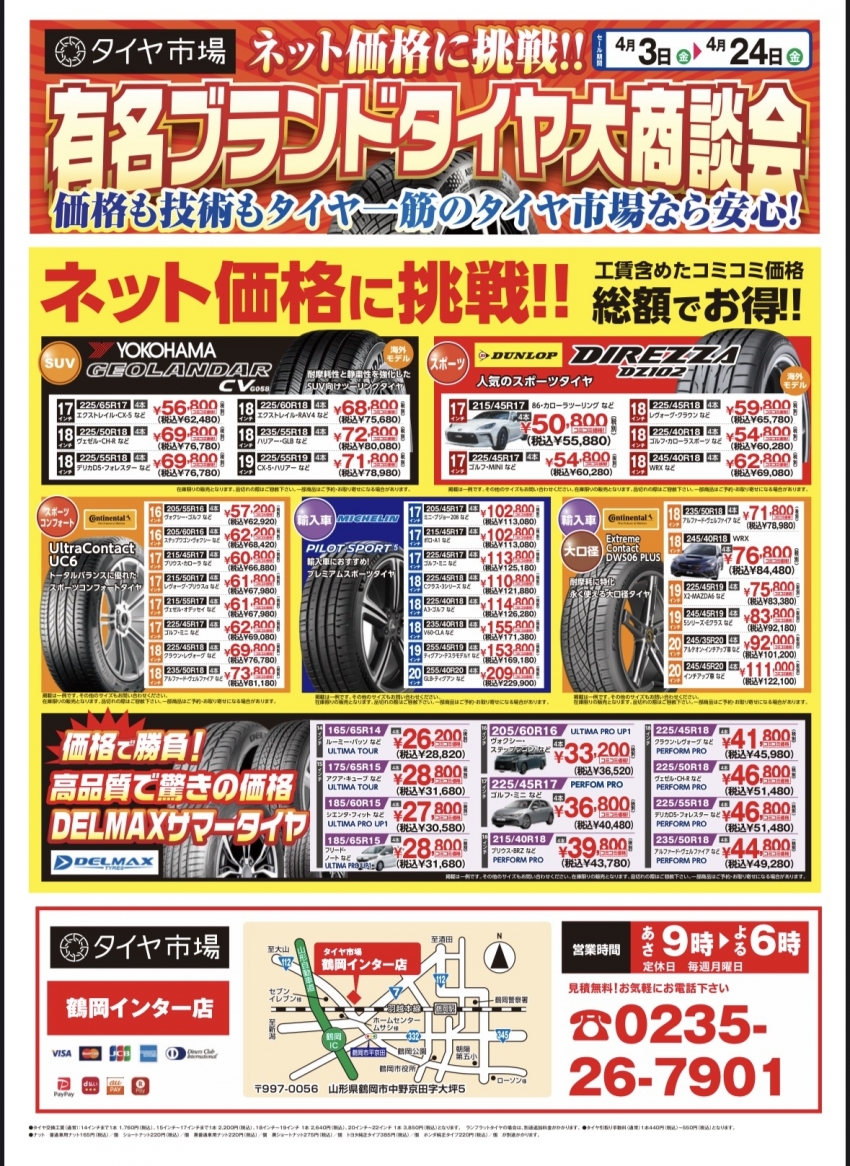 こんにちは!タイヤ市場鶴岡インター店です!
