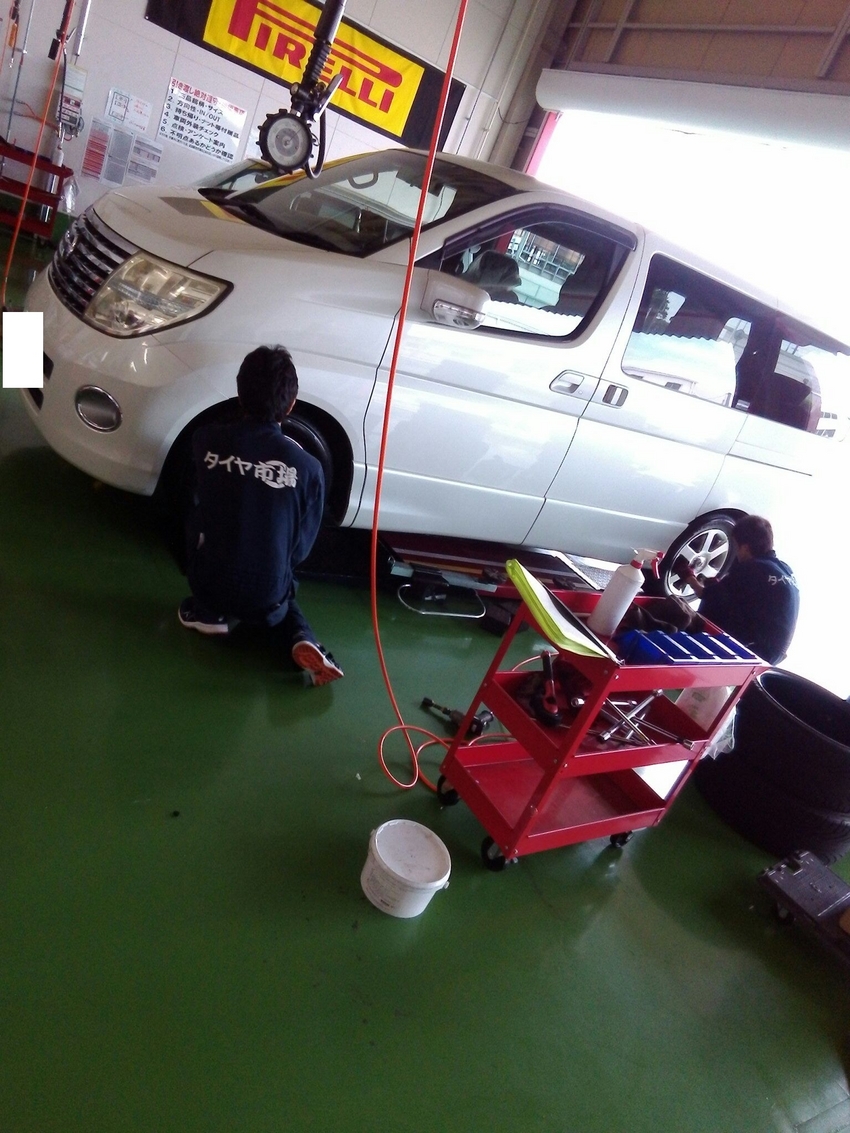 エルグランドのお客様にタイヤ4本お求め頂きました。この度は当店をご利用頂き誠にありがとうございます。点検お待ちしております。