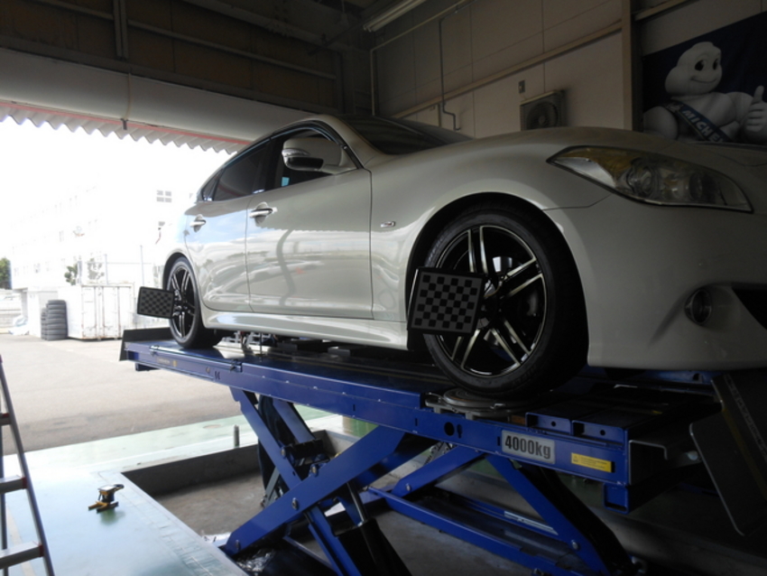 本日フーガでおこしのお客様、19インチアルミセットご購入頂き