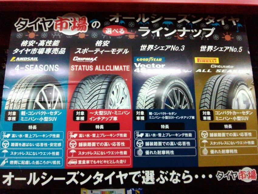 で、タイヤ市場としてはオールシーズンタイヤ豊富に用意してます。