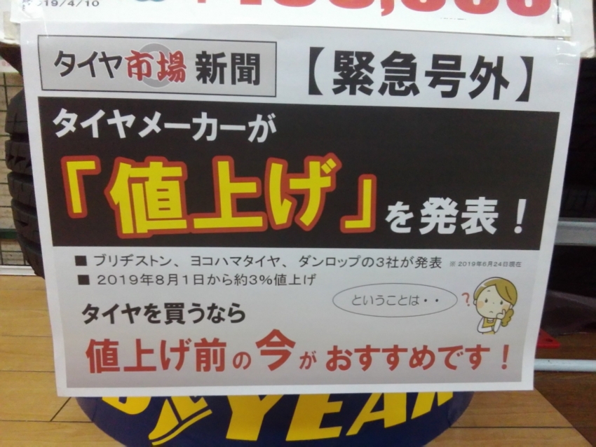(確か去年か一昨年もタイヤメーカー値上げしてたような・・・)