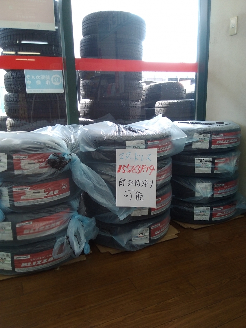 店舗入り口にホイール組済みスタッドレス袋入り!(笑)