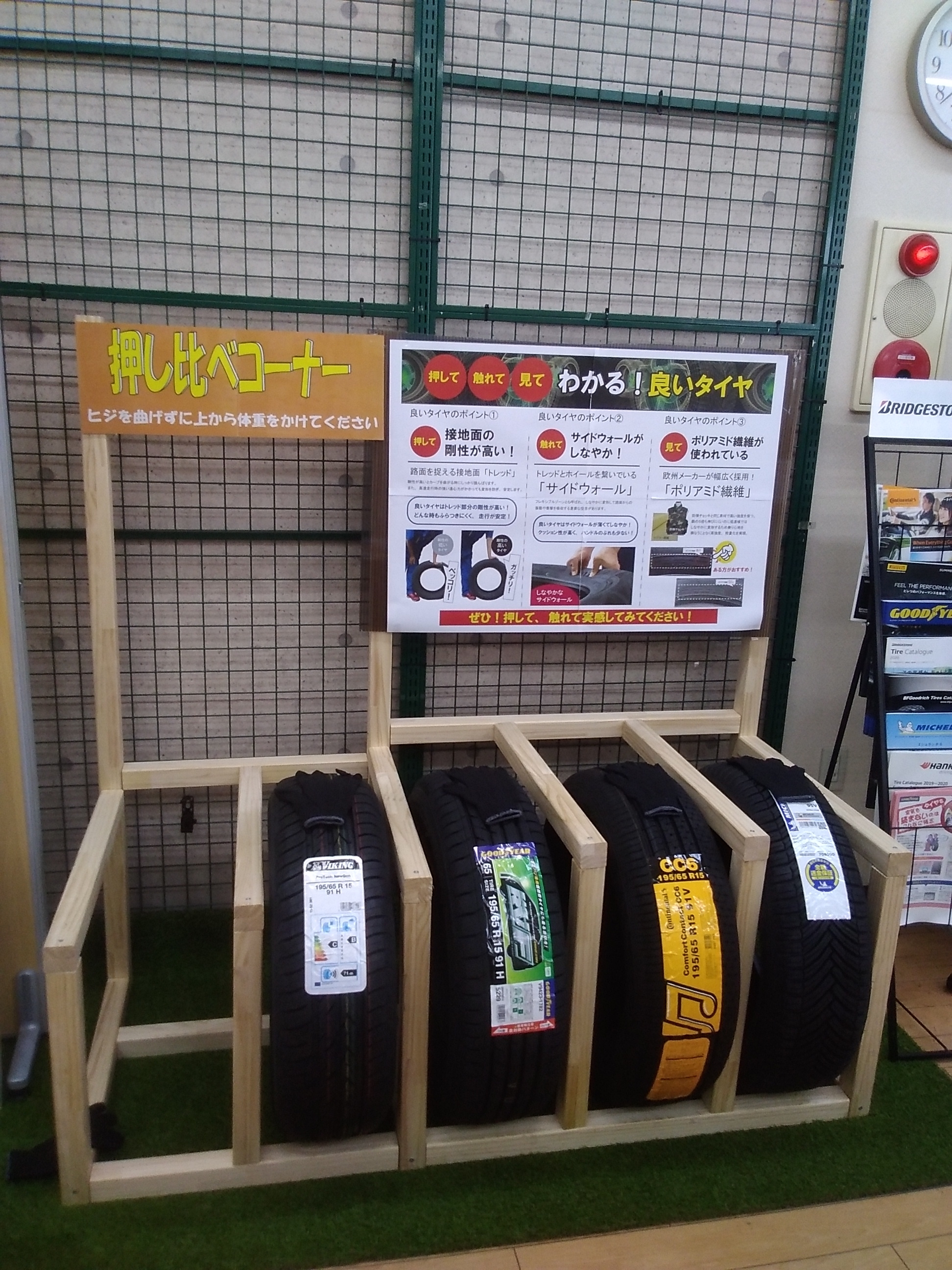 当店カウンター前にタイヤ押し比べコーナー