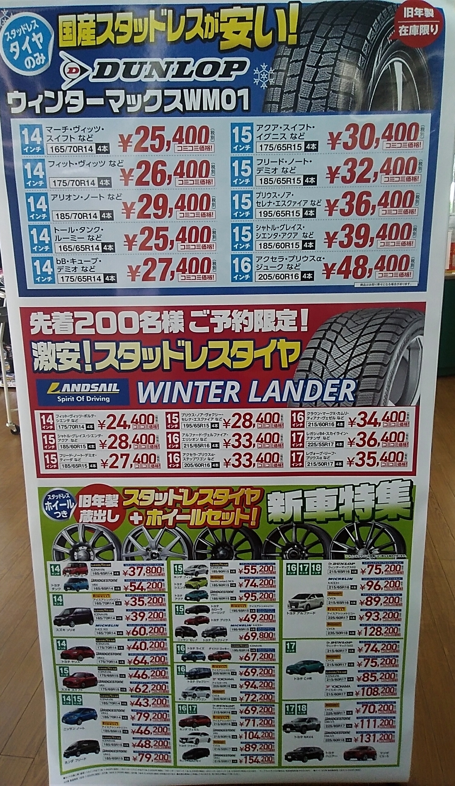 また、激安スタッドレスタイヤ