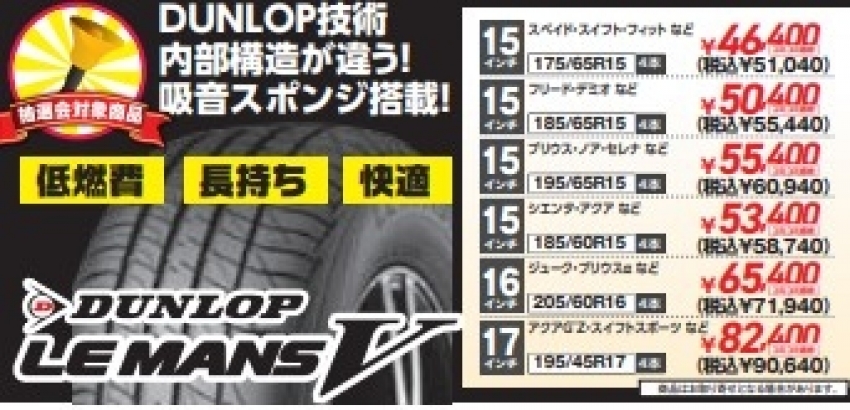 ダンロップのルマンV 15インチ~17インチの数量限定の