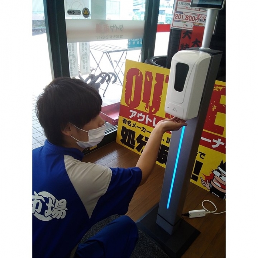 ご来店されましたら、まずこちらの機械で検温と手指の消毒をお願いいたします!