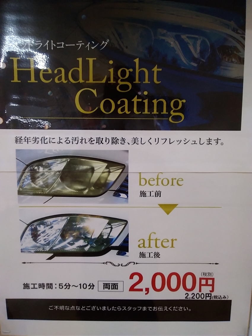 当店では、ヘッドライトコーティングを税込2,200円で作業させて頂きます!!