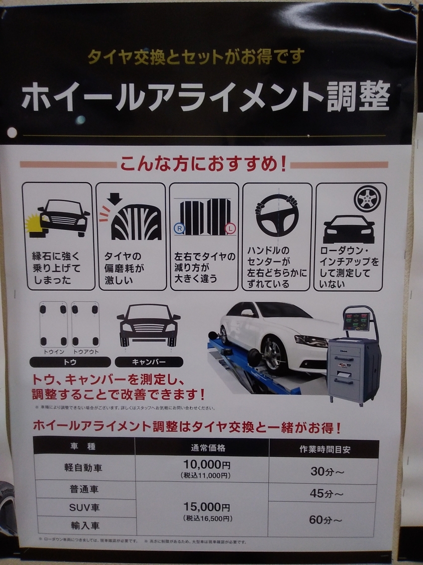 是非タイヤ交換と一緒にアライメント調整をしてはいかかでしょうか??