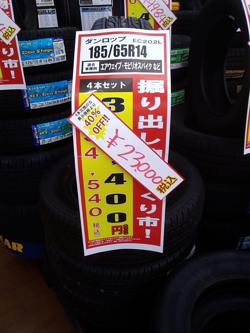 185/65R14 タイヤが安い!!エアウェイブ、モビリオスパイクオーナー必見!買うなら今!!