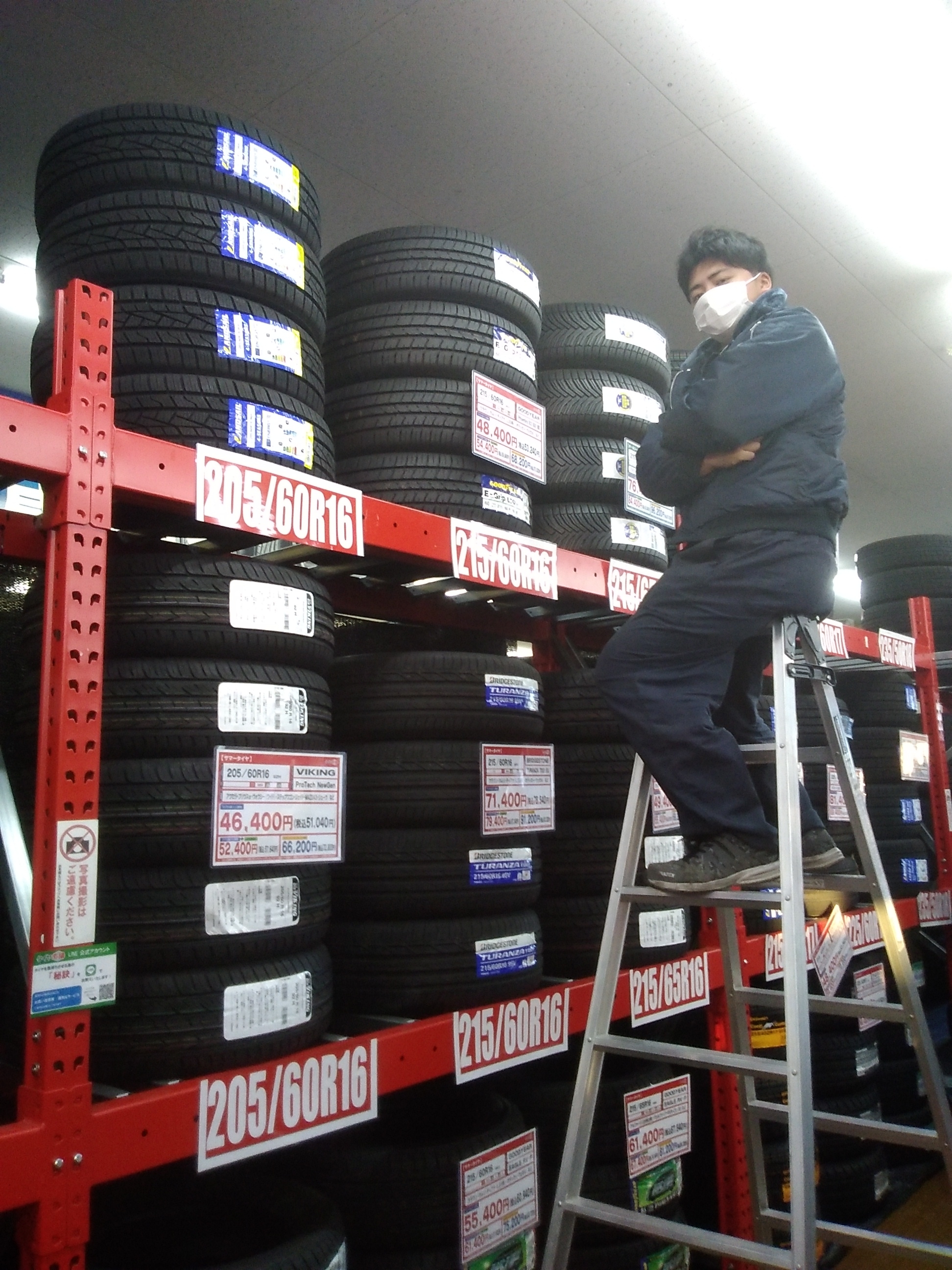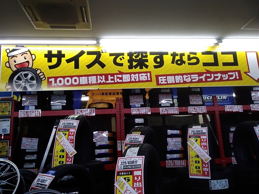 サイズ別でタイヤが置いてあるので、探しやすくなっております!
