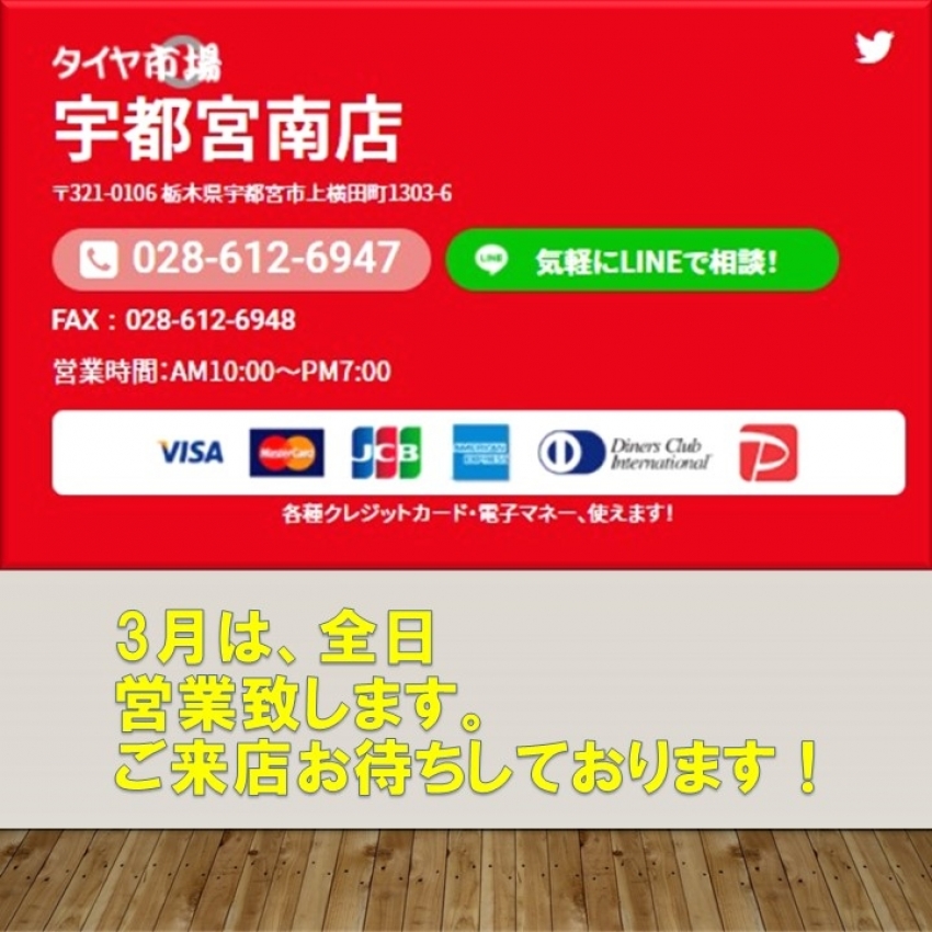 タイヤ市場宇都宮南店・3月・4月は、休まず営業いたします!