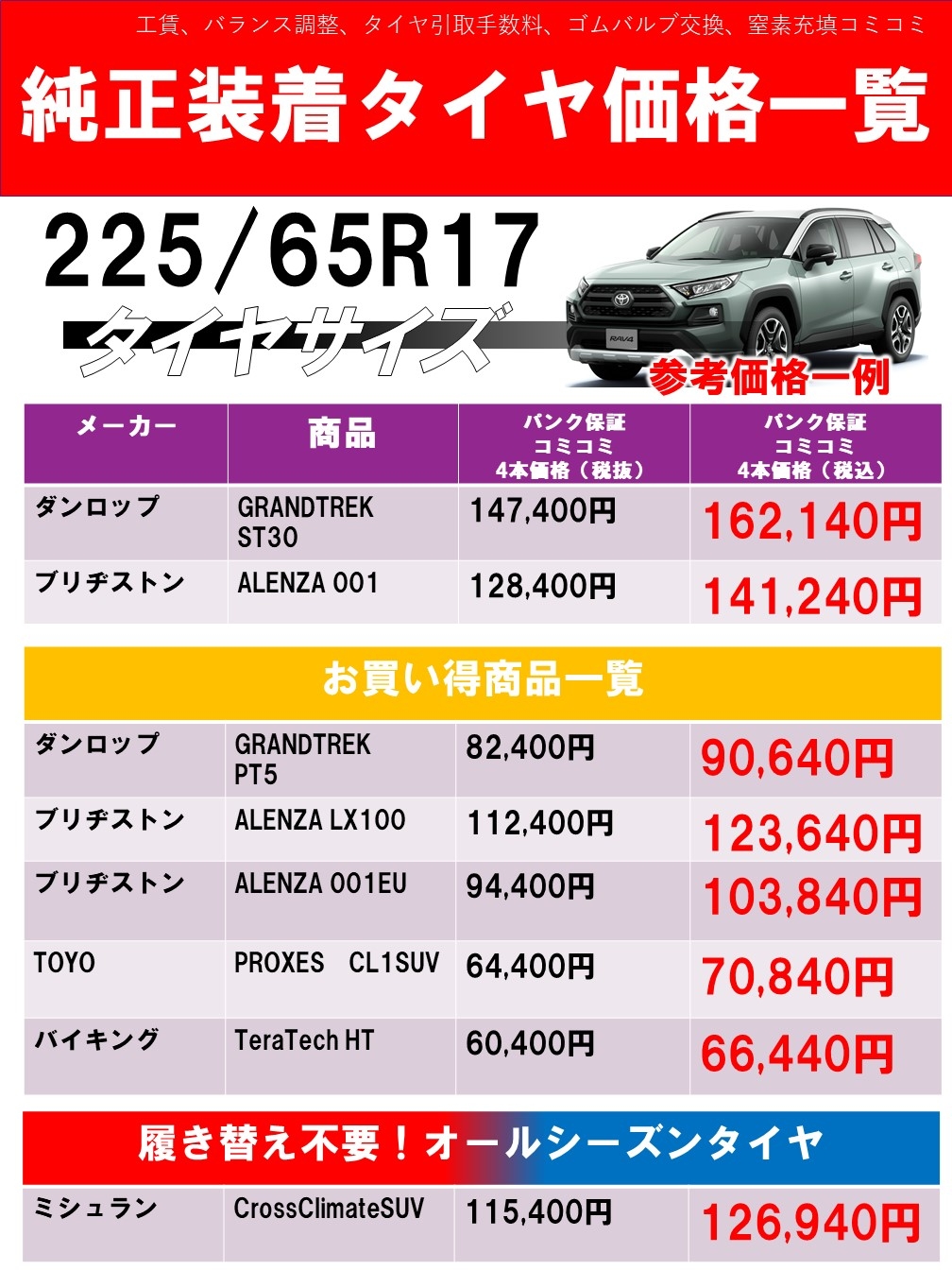 225/65R17装着のお車にお乗りのお客様必見!当日作業可能!高性能夏タイヤからオールシーズンタイヤまで選べるラインナップ!