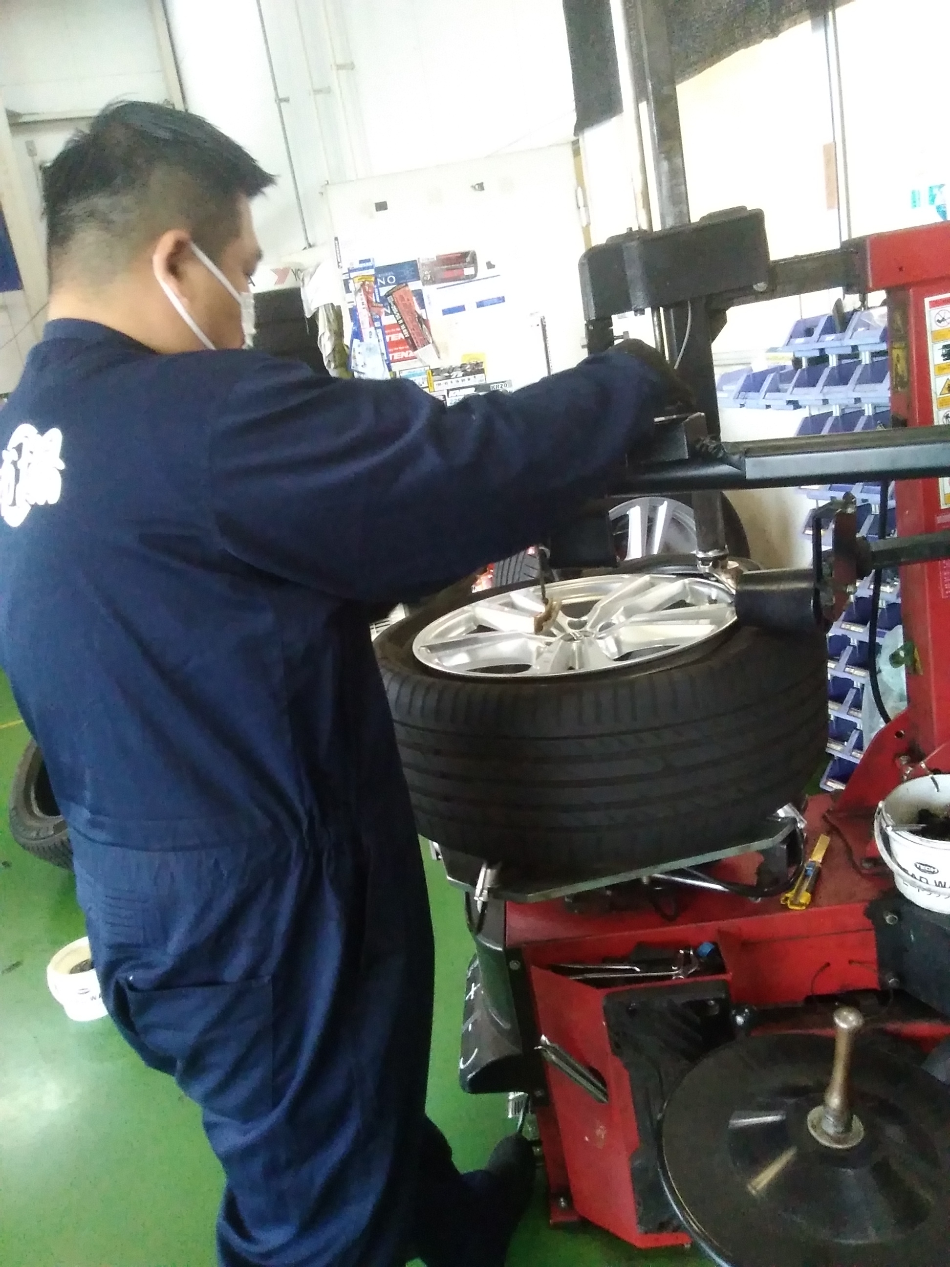 当店では、しっかりとエアサスの設定を行い作業に入ります。