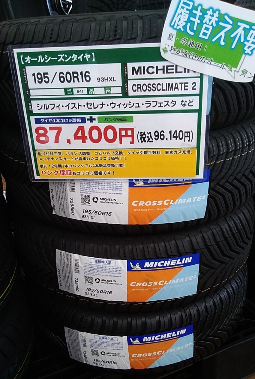 夏も冬もグリップ持続、通しで履ける、耐久性も高く経済的なミシュランのクロスクライメート2になります!